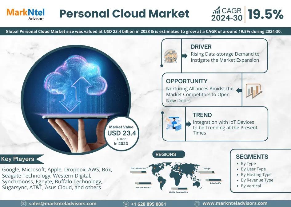 MarkNtel Advisors, a leading market research and consulting firm, has announced the release of its latest study titled Personal Cloud Market Research Report: Forecast (2024–2030). This report provides a detailed assessment of the Personal Cloud, covering its evolving dynamics, emerging trends, key growth drivers, major challenges, and competitive landscape.