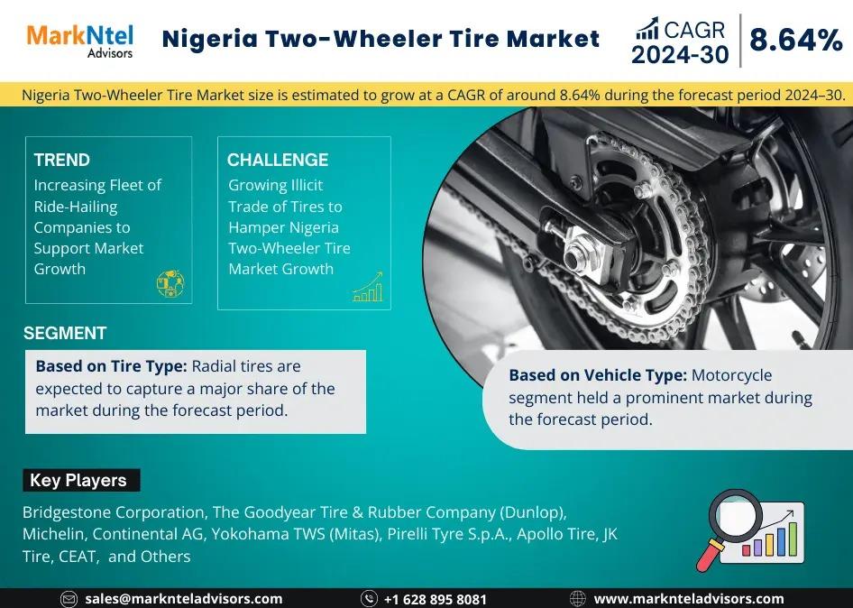MarkNtel Advisors, a leading market research and consulting firm, has announced the release of its latest study titled Nigeria Two-Wheeler Tire Market Research Report: Forecast (2024–2030). This report provides a detailed assessment of the Nigeria Two-Wheeler Tire, covering its evolving dynamics, emerging trends, key growth drivers, major challenges, and competitive landscape.