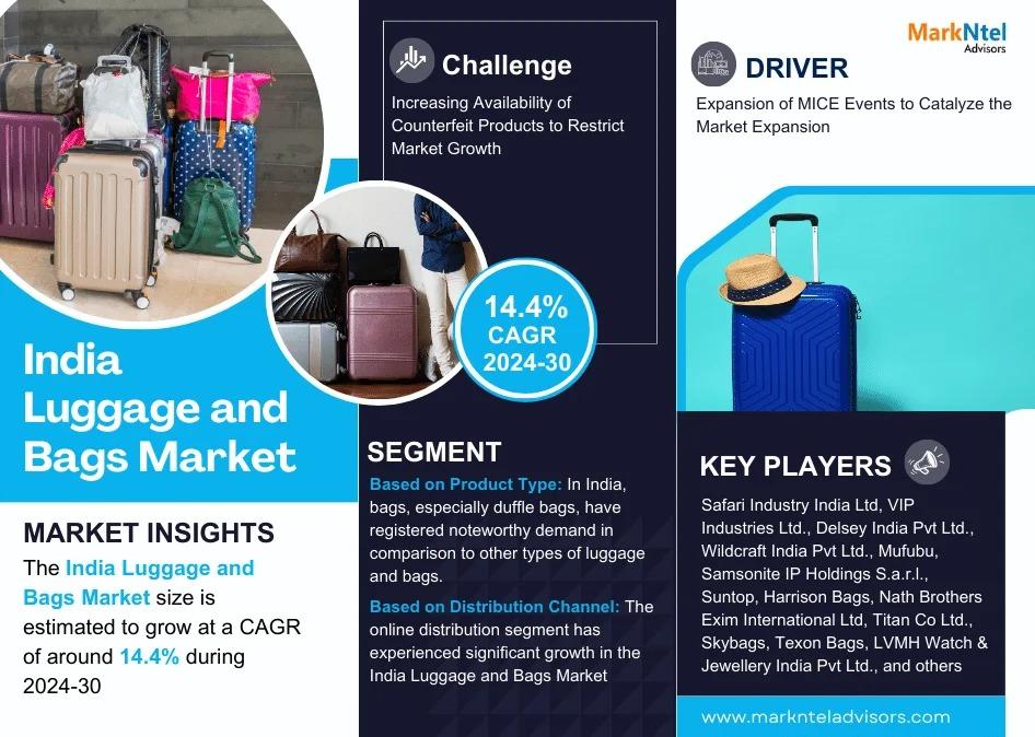 MarkNtel Advisors, a leading market research and consulting firm, has announced the release of its latest study titled India Luggage and Bags Market Research Report: Forecast (2024–2030). This report provides a detailed assessment of the India Luggage and Bags, covering its evolving dynamics, emerging trends, key growth drivers, major challenges, and competitive landscape.