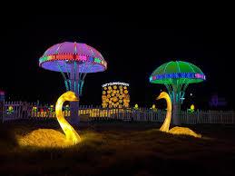 The Glow Garden Statue of Unity is a themed garden featuring life-sized illuminated sculptures of animals, birds, plants, and nature-inspired designs. These glowing installations light up after sunset, creating a dreamlike environment that is perfect for evening walks, photography, and family outings.
