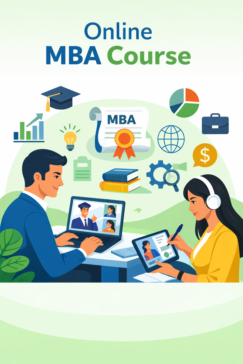 An Online MBA Course is a Master of Business Administration program delivered through digital platforms. Classes are conducted via live lectures, recorded videos, online assignments, case studies, and virtual exams. The curriculum is similar to a regular MBA but offers more flexibility.