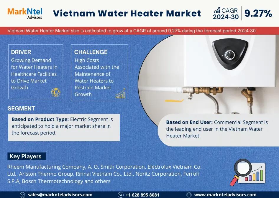 MarkNtel Advisors, a leading market research and consulting firm, has announced the release of its latest study titled Vietnam Water Heater Market Research Report: Forecast (2024–2030). This report provides a detailed assessment of the Vietnam Water Heater, covering its evolving dynamics, emerging trends, key growth drivers, major challenges, and competitive landscape.