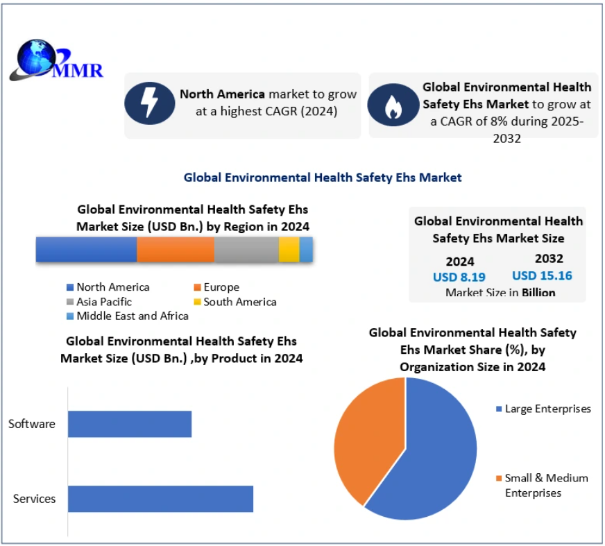 The Global Environmental Health and Safety (EHS) Market was valued at USD 8.19 billion in 2024 and is projected to reach nearly USD 15.16 billion by 2032, growing at a CAGR of 8% from 2025 to 2032. Environmental Health and Safety is a multidisciplinary framework focused on safeguarding employees, assets, and the environment by minimizing workplace hazards, occupational illnesses, and environmental risks. EHS systems support organizations in complying with regulatory standards while promoting sustainable and responsible business operations.