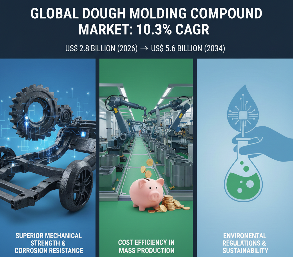 According to 24Chemical Research, Global Dough Molding Compound (DMC) Market continues to expand at a robust pace, with its valuation reaching US$ 2.8 billion in 2026. According to industry analysis, the market is projected to grow at a CAGR of 10.3%, reaching approximately US$ 5.6 billion by 2034. This impressive growth trajectory underscores the rising demand for DMC across diverse industries, primarily driven by its superior mechanical strength, corrosion resistance, and cost efficiency in mass production applications.