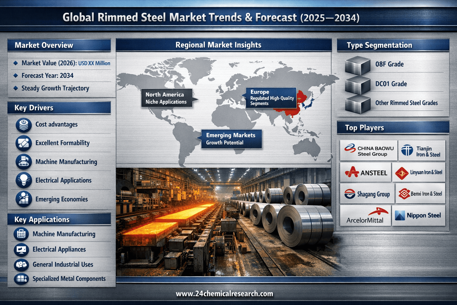 According to 24Chemical Research,Global Rimmed Steel Market continues to demonstrate steady demand, with its valuation reaching US$ million in 2026. According to industry projections, the market is poised to expand through 2034, driven by applications in machine manufacturing and electrical appliances. This growth trajectory reflects the material's unique metallurgical properties that make it indispensable for specific industrial applications.