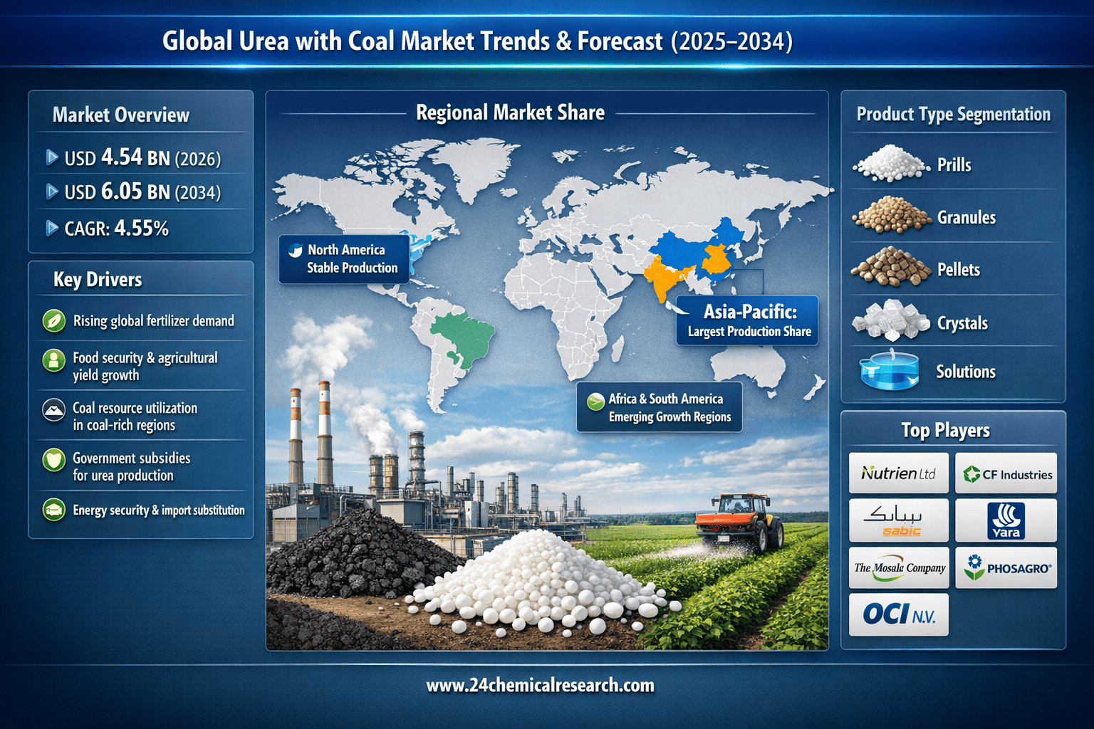 According to 24Chemical Research, Global Urea with Coal market continues to demonstrate steady growth, with its valuation reaching USD 4.54 billion in 2026. According to the latest industry analysis, the market is projected to grow at a CAGR of 4.55%, reaching approximately USD 6.05 billion by 2034. This growth is primarily driven by increasing demand for nitrogen-based fertilizers in agriculture and expanding applications in industrial processes.