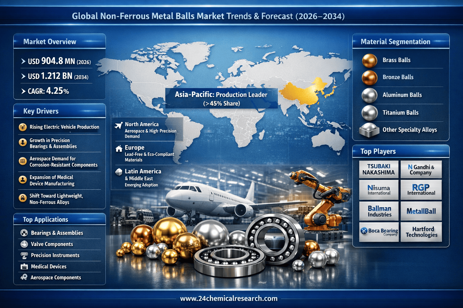 According to 24Chemical Research, Global Non-Ferrous Metal Balls market continues to exhibit stable expansion, with its valuation reaching USD 904.8 million in 2026. According to comprehensive industry analysis, the market is projected to grow at a CAGR of 4.25%, reaching approximately USD 1.212 billion by 2034. This growth trajectory reflects increasing demand across precision engineering applications, particularly in automotive and aerospace sectors where corrosion-resistant components are essential.
