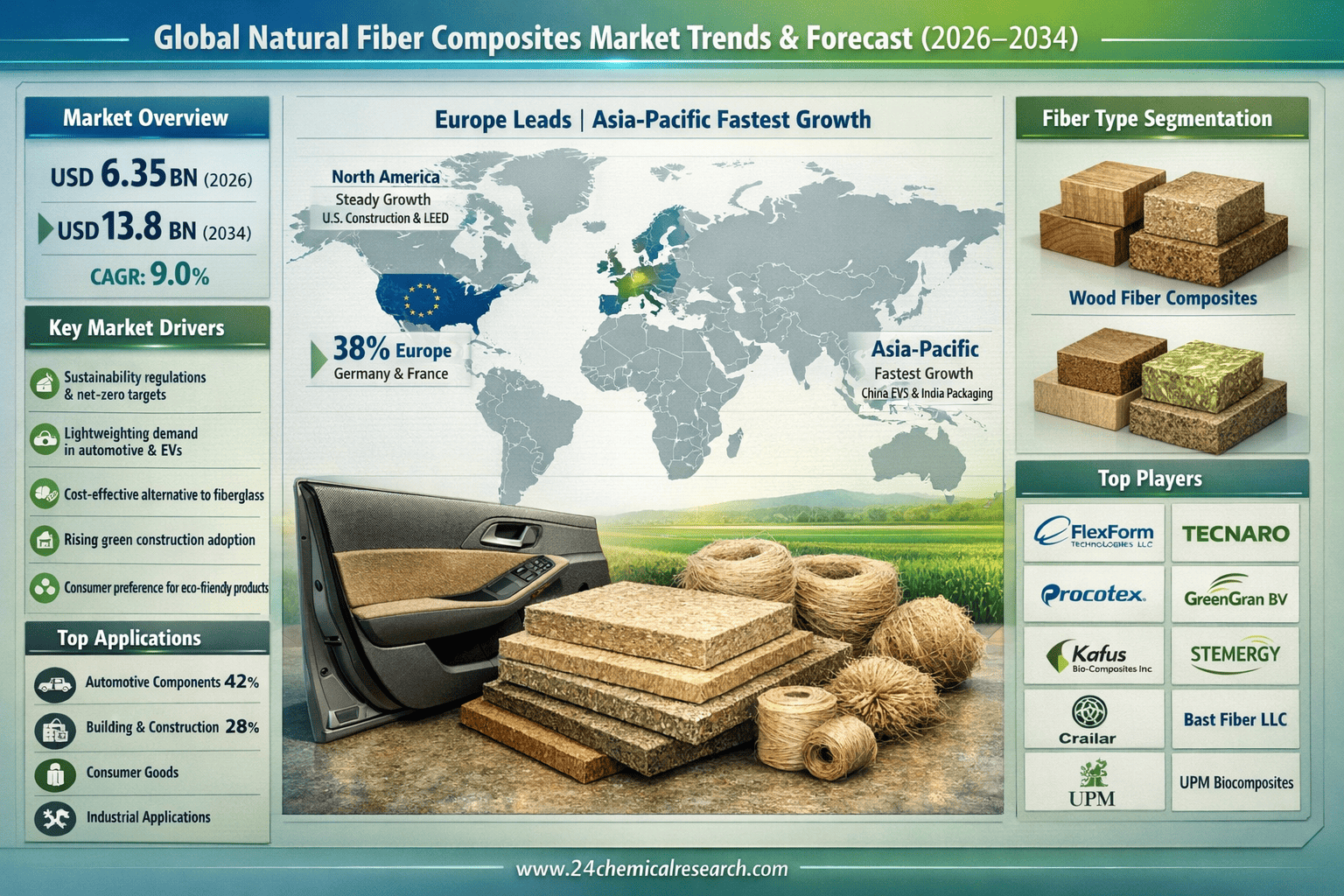 Why Is the Natural Fiber Composites Market Set to Reach USD 13.8 Billion by 2034 and Who Leads the Industry?
