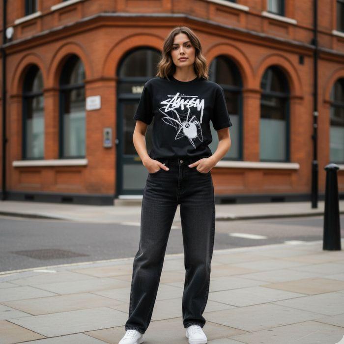 Streetwear didn’t simply materialize from concrete jungles. It also rose from salt air and sun-bleached sidewalks. The coastal aesthetic that helped shape Stussy carried an unpolished charisma — surfboards under arms, tees softened by ocean spray, silhouettes relaxed but intentional. This wasn’t fashion chasing approval. It was style born from motion, sand, and spontaneity.