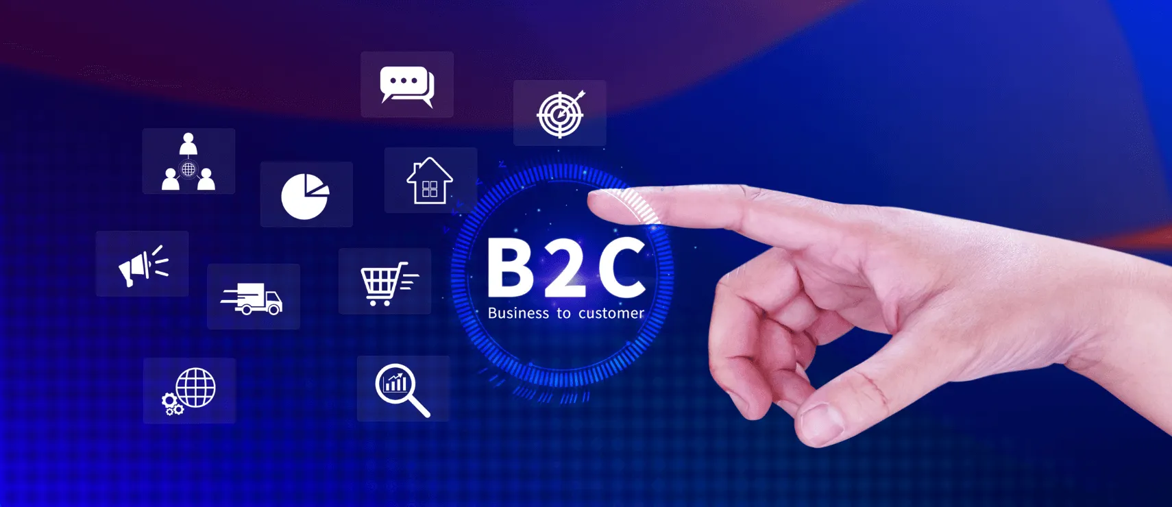 B2C stands for business-to-consumer. It describes businesses that sell products or services directly to customers. Common examples include ecommerce stores, mobile apps, retail brands, and subscription services. These companies rely on digital platforms such as websites, social media, and search engines to reach their audience.