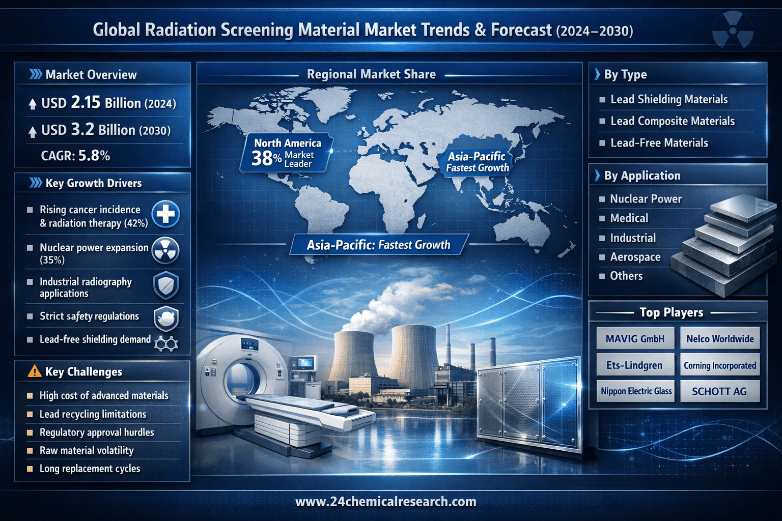 According to 24Chemical Research, Global Radiation Screening Material Market continues to expand significantly, driven by increasing safety regulations in nuclear, medical, and industrial sectors. Valued at USD 2.15 billion in 2024, the market is projected to grow at a CAGR of 5.8%, reaching USD 3.2 billion by 2030. This growth is fueled by advancements in radiation protection technologies and rising demand for lead-free alternatives.