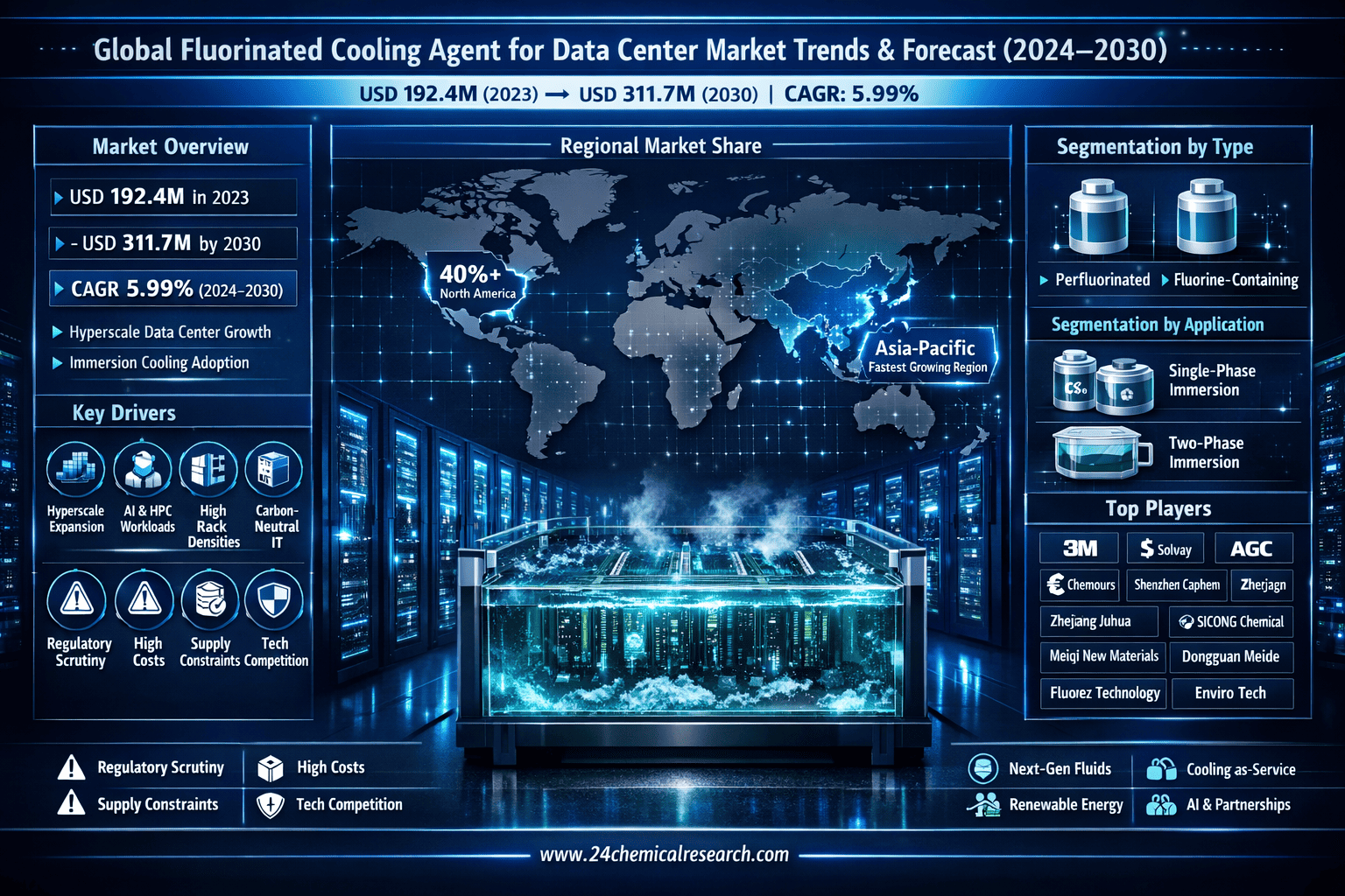 According to 24Chemical Research, Global Fluorinated Cooling Agent for Data Center Market is experiencing significant growth, with its valuation reaching USD 192.4 million in 2023. According to latest industry analysis, the market is projected to expand at a CAGR of 5.99%, reaching approximately USD 311.7 million by 2030. This robust growth is primarily driven by increasing demand for energy-efficient cooling solutions in hyperscale data centers, coupled with the global push toward sustainable IT infrastructure.