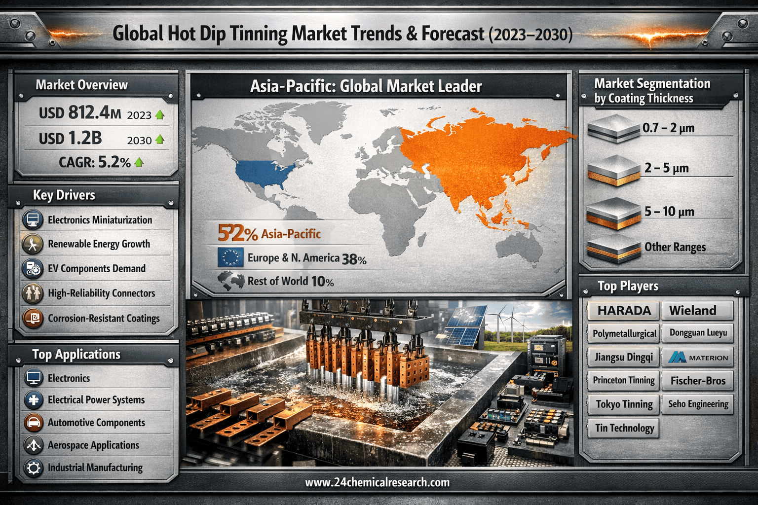 According to 24Chemical Research, Global Hot Dip Tinning market was valued at US$ 812.4 million in 2023 and is projected to reach USD 1.2 billion by 2030, at a CAGR of 5.2% during the forecast period.