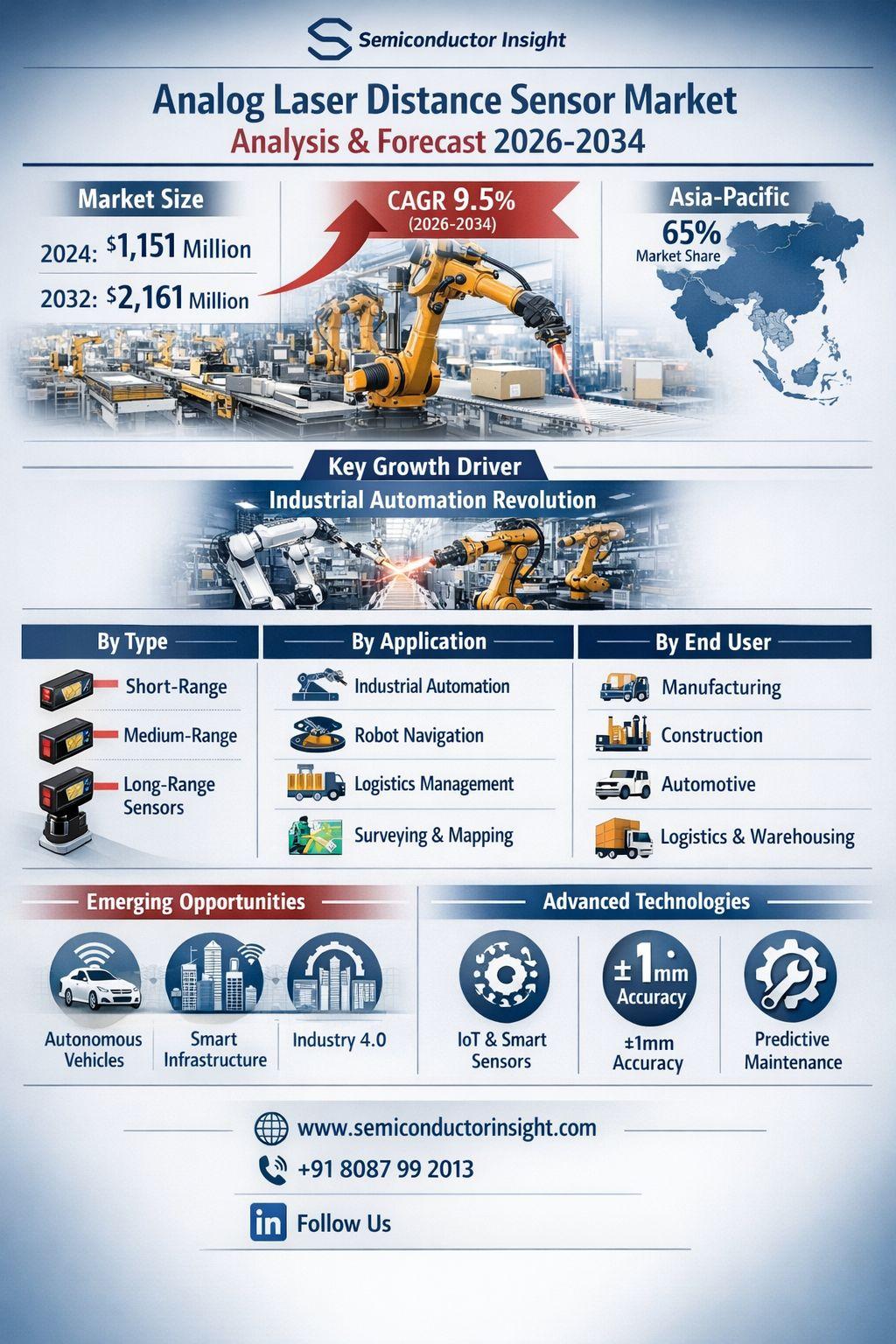 Global Analog Laser Distance Sensor Market, valued at US$ 1,151 million in 2024, is poised for substantial growth, projected to reach US$ 2,161 million by 2032. This expansion, representing a compound annual growth rate (CAGR) of 9.5%, is detailed in a comprehensive new report published by Semiconductor Insight. The study underscores the critical role these precision measurement devices play across multiple industries, particularly in automation and robotics where accurate distance measurement is paramount.