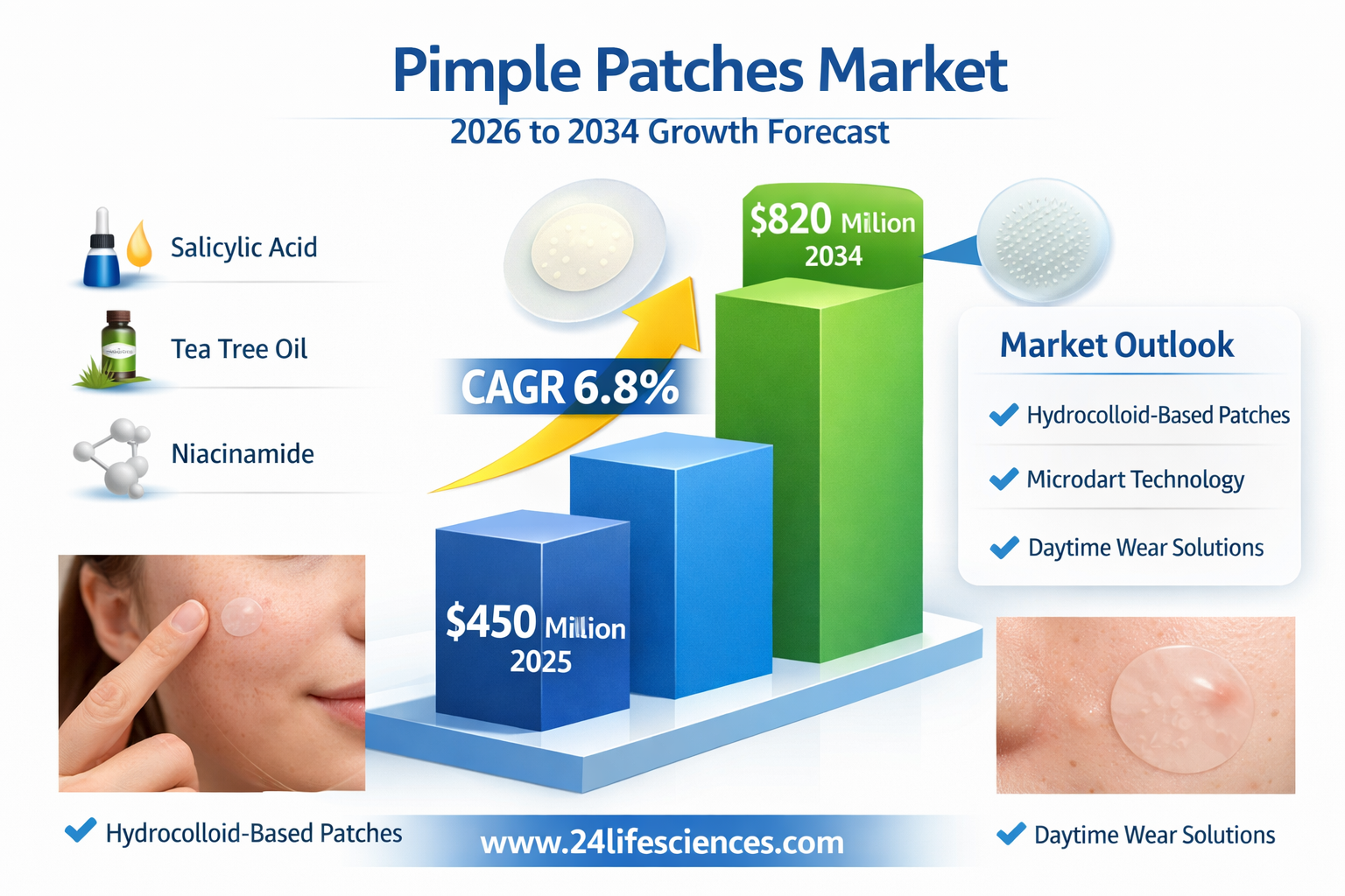 According to a newly published market research report by 24LifeSciences, global pimple patches market was valued at USD 450 million in 2025 and is projected to reach USD 820 million by 2034, growing at a compound annual growth rate (CAGR) of 6.8% during the forecast period 20262034.