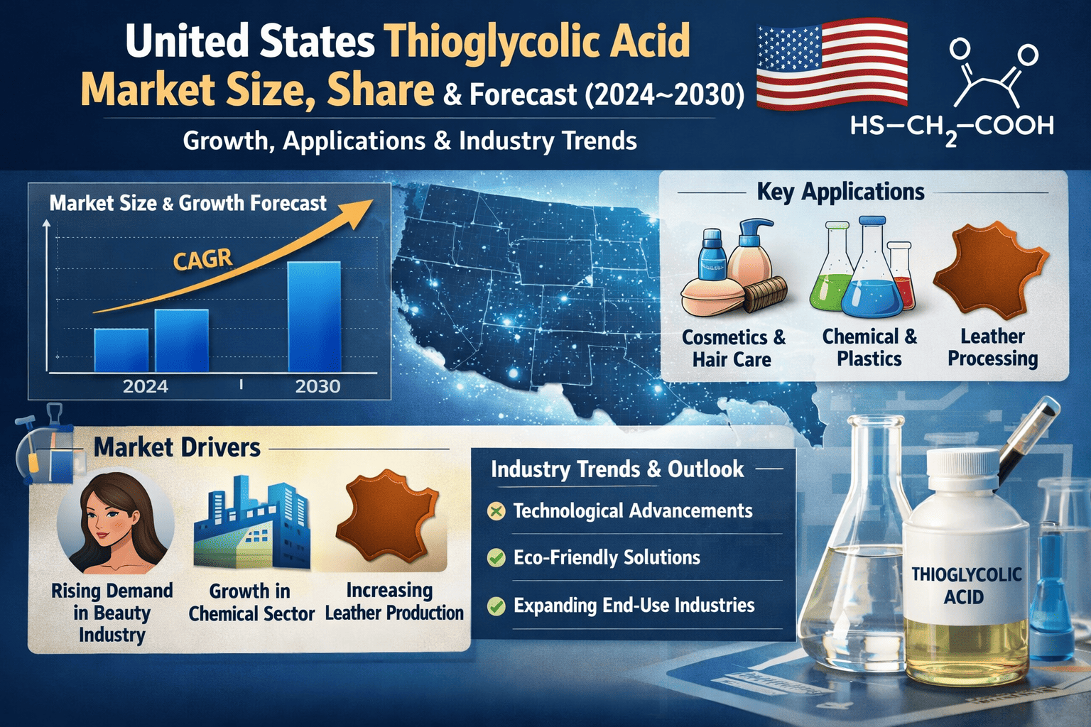 United States Thioglycolic Acid Market Size, Share & Forecast (2024–2030): Growth, Applications & Industry Trends