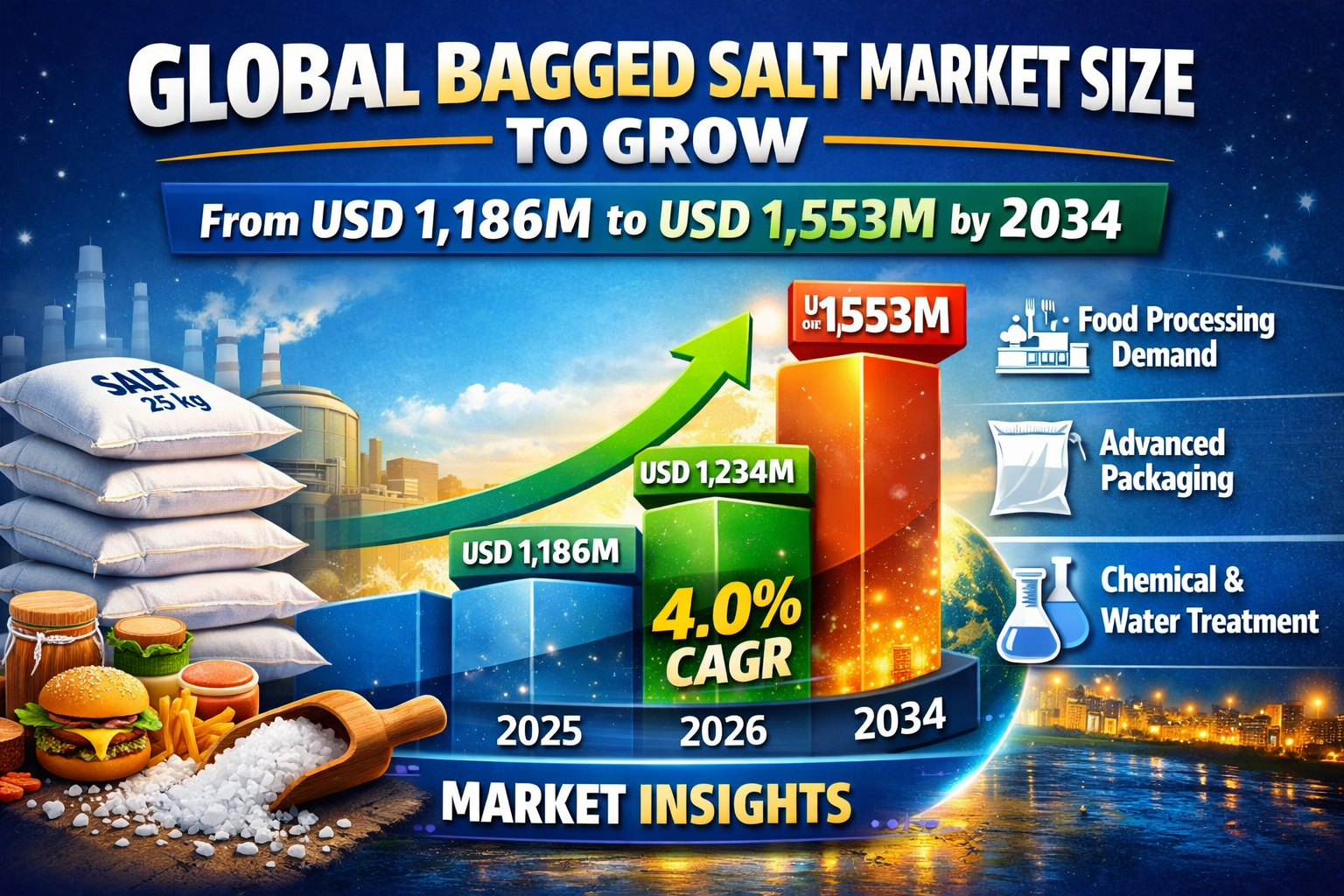 Global Bagged Salt Market Size to Grow from USD 1,186M to USD 1,553M by 2034