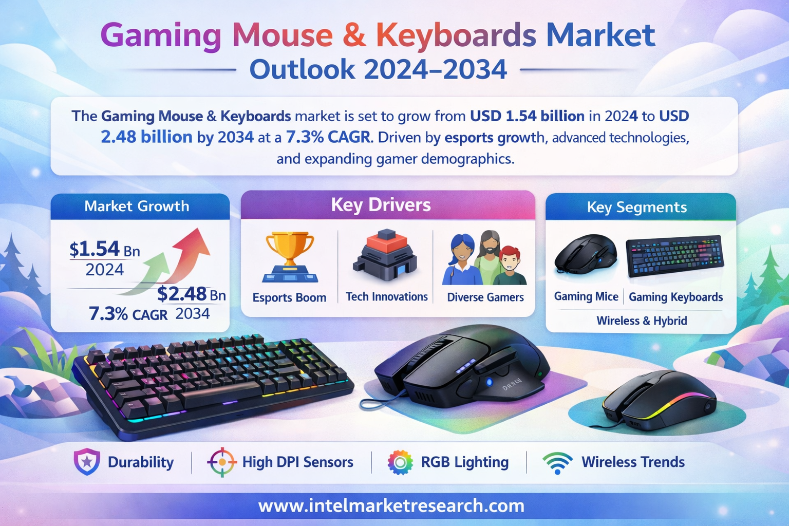 According to a new report from Intel Market Research, the global Gaming Mouse & Keyboards market was valued at USD 1.54 billion in 2024 and is projected to reach USD 2.48 billion by 2034, growing at a steady CAGR of 7.3% during the forecast period. This growth reflects the expanding global gaming ecosystem, technological advancements in peripheral hardware, and shifting consumer preferences toward premium gaming experiences.