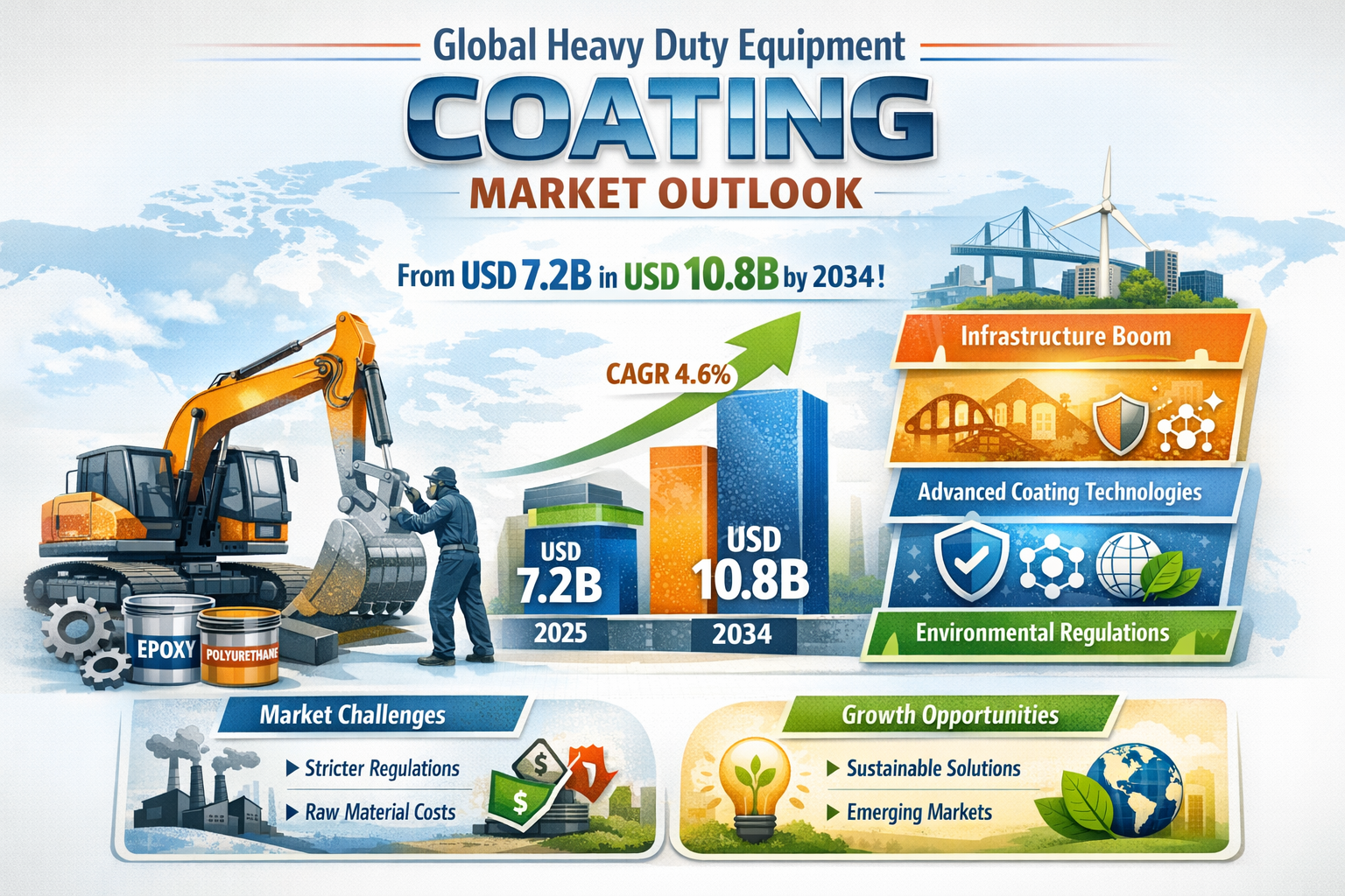 Global Heavy Duty Equipment Coating Market Size to Grow from USD 7.2B to USD 10.8B by 2034