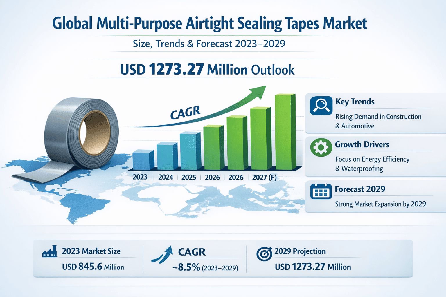Global Multi-Purpose Airtight Sealing Tapes Market Size, Trends & Forecast 2023–2029 (USD 1273.27 Million Outlook)