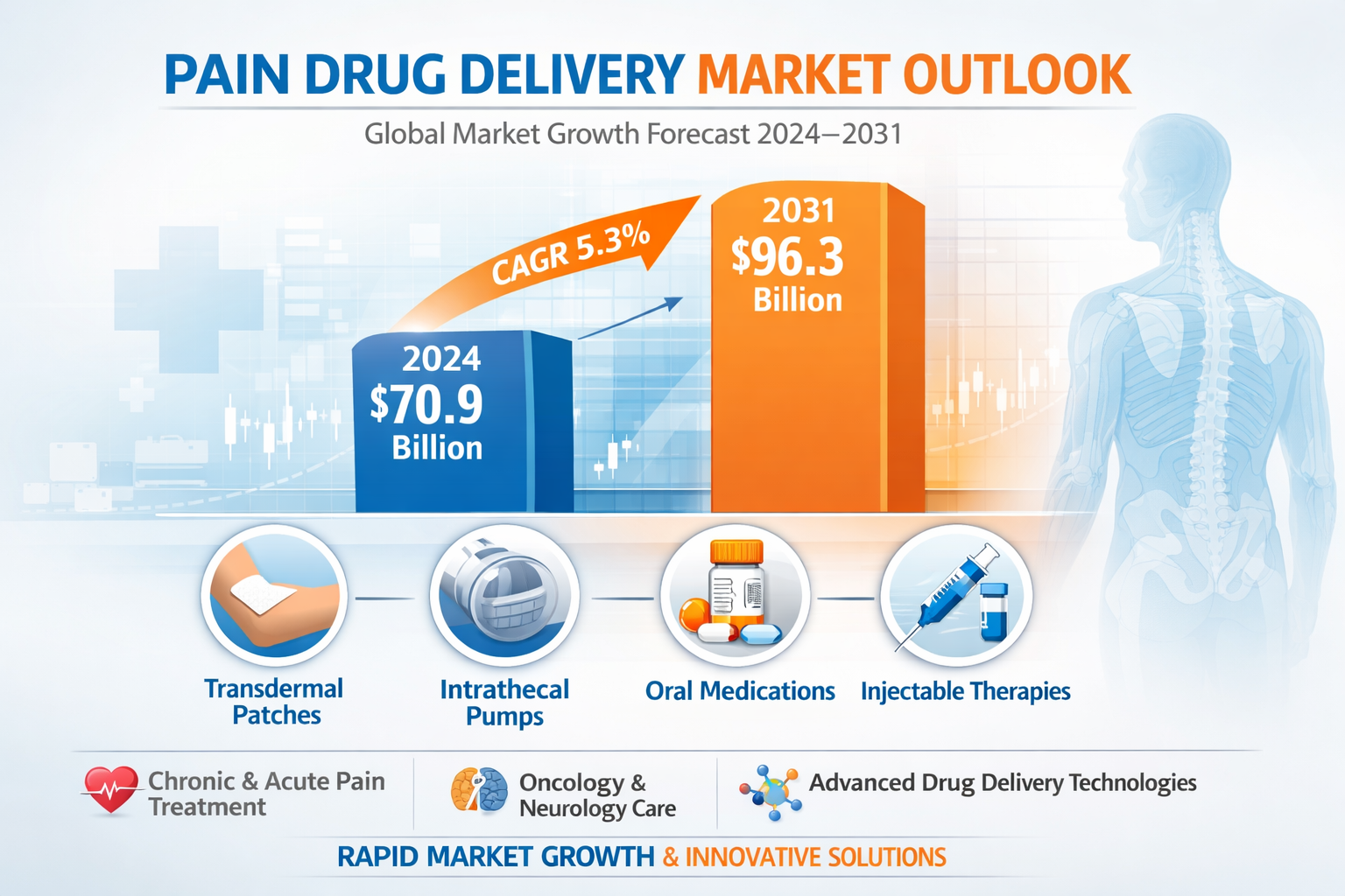 Pain Drug Delivery Market to Reach USD 96.3 Billion by 2031 | CAGR 5.3% | Transdermal, Injectable & Advanced Analgesic Systems