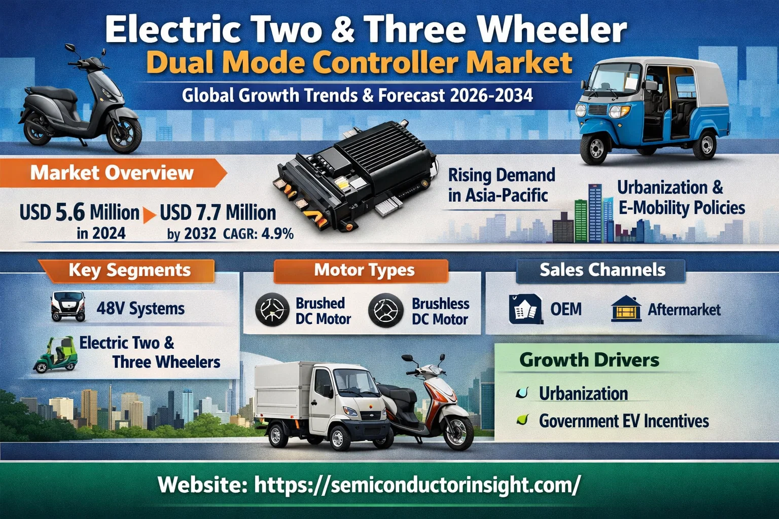 Global Electric Two and Three Wheeler Dual Mode Controller Market, valued at USD5.6 million in 2024, is projected to reach USD7.7 million by 2032, growing at a compound annual growth rate (CAGR) of 4.9%. This steady expansion is detailed in a comprehensive new report published by Semiconductor Insight. The study underscores the pivotal role these advanced power management systems play in enhancing the performance, efficiency, and versatility of electric two and three-wheelers, which are becoming increasingly critical for urban mobility and last-mile logistics solutions worldwide.