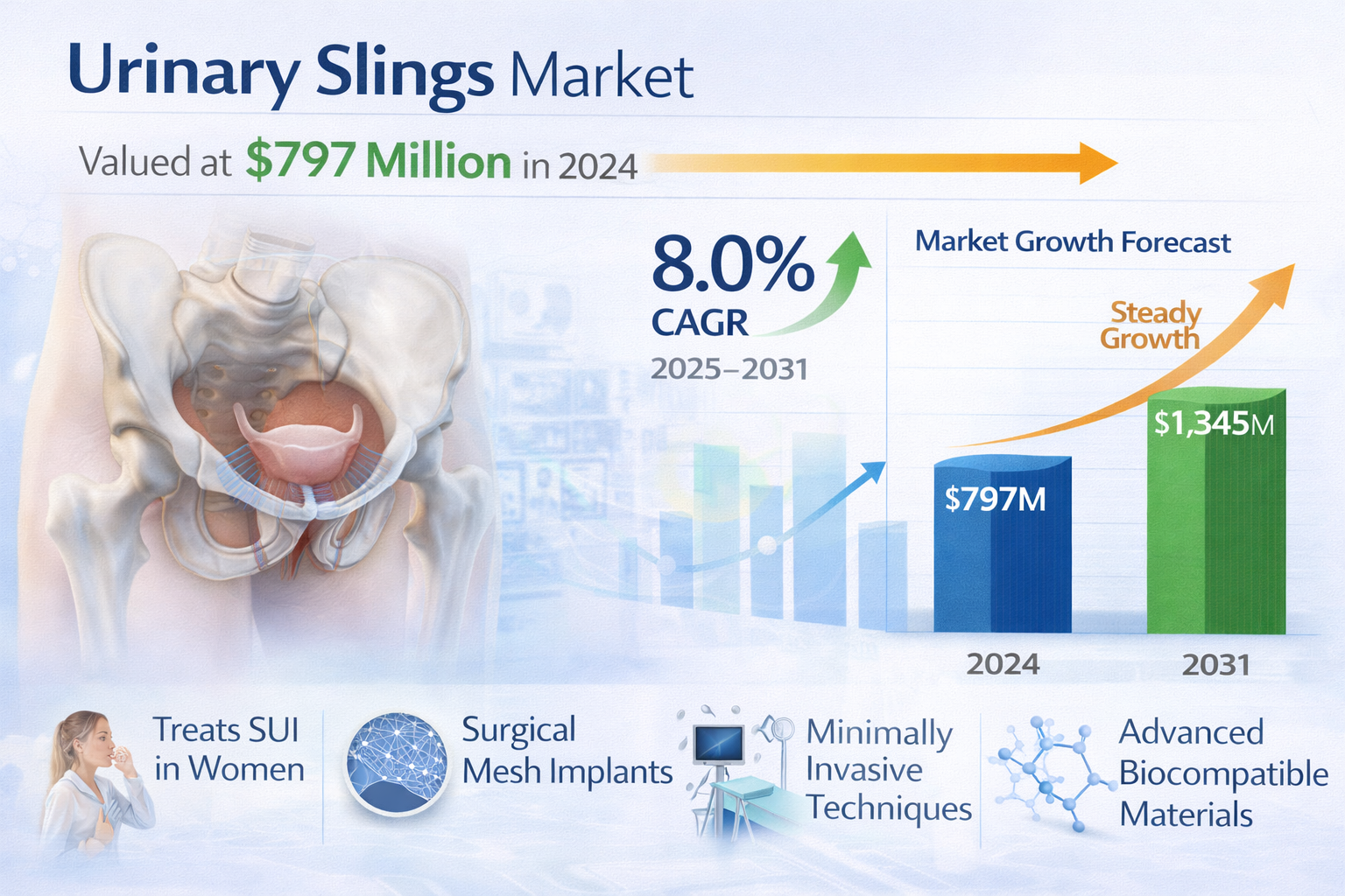 Urinary Slings Market to Reach USD 1,345 Million by 2031 | CAGR 8.0%