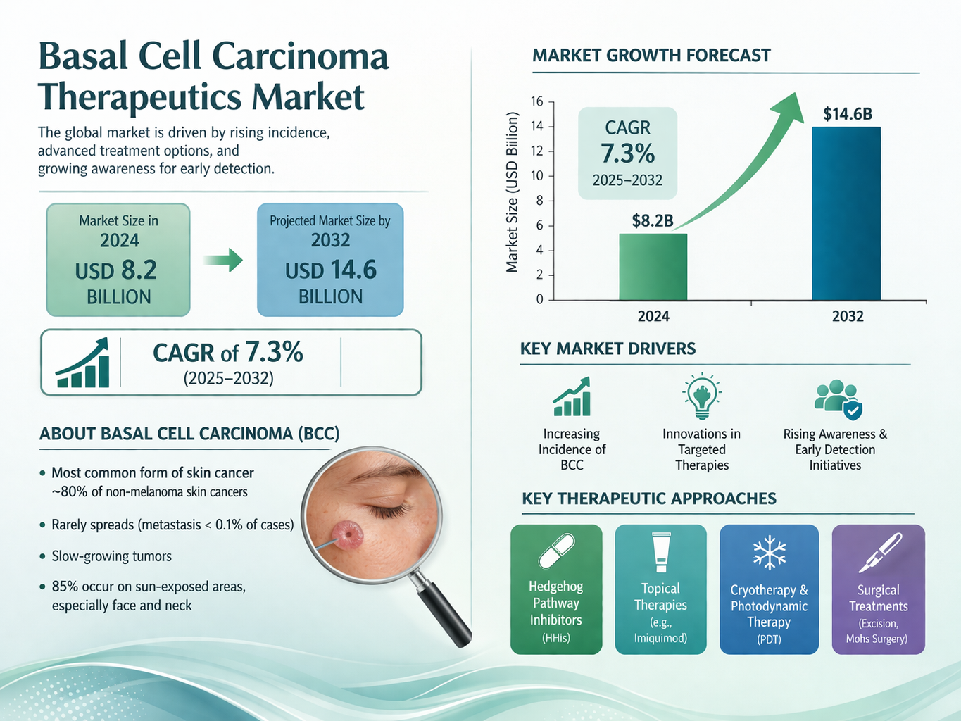 Basal Cell Carcinoma Therapeutics Market to Reach USD 14.6 Billion by 2032 | CAGR 7.3%