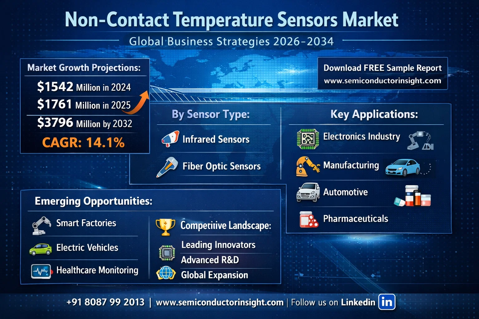 Non-Contact Temperature Sensors Market was valued at USD 1542 million in 2024. The market is projected to grow from USD 1761 million in 2025 to USD 3796 million by 2032, exhibiting a CAGR of 14.1% during the forecast period. This robust expansion is detailed in a comprehensive new report published by Semiconductor Insight, which underscores the escalating reliance on these critical sensing components across the electronics, manufacturing, and automotive sectors. The study emphasizes how non-contact temperature sensors are fundamental to modern industrial automation, process control, and safety systems, enabling precise thermal monitoring without physical interference, which is paramount in high-speed and delicate manufacturing environments.