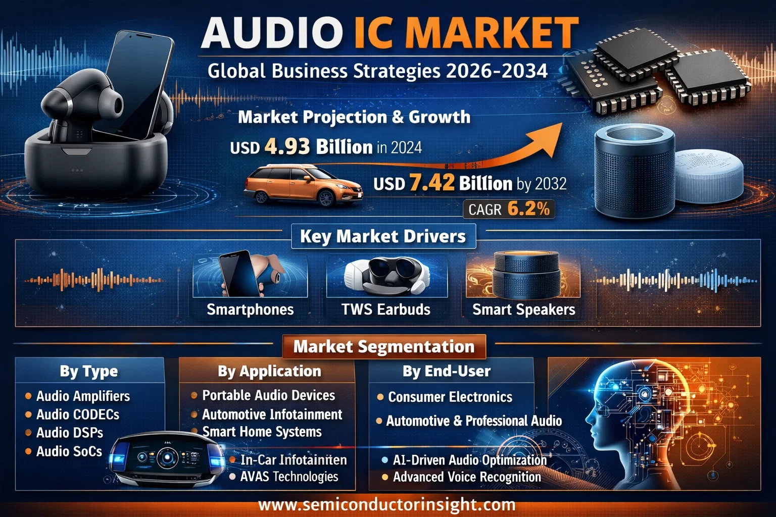 Audio IC Market, valued at a robust USD 4.93 billion in 2024, is on a strong growth path, projected to grow from USD 5.24 billion in 2025 to USD 7.42 billion by 2032. This expansion, representing a steady compound annual growth rate (CAGR of 6.2%), is detailed in a comprehensive new report published by Semiconductor Insight. The study underscores the indispensable function of these integrated circuits in powering and enhancing audio experiences across a vast spectrum of consumer and professional electronic devices.