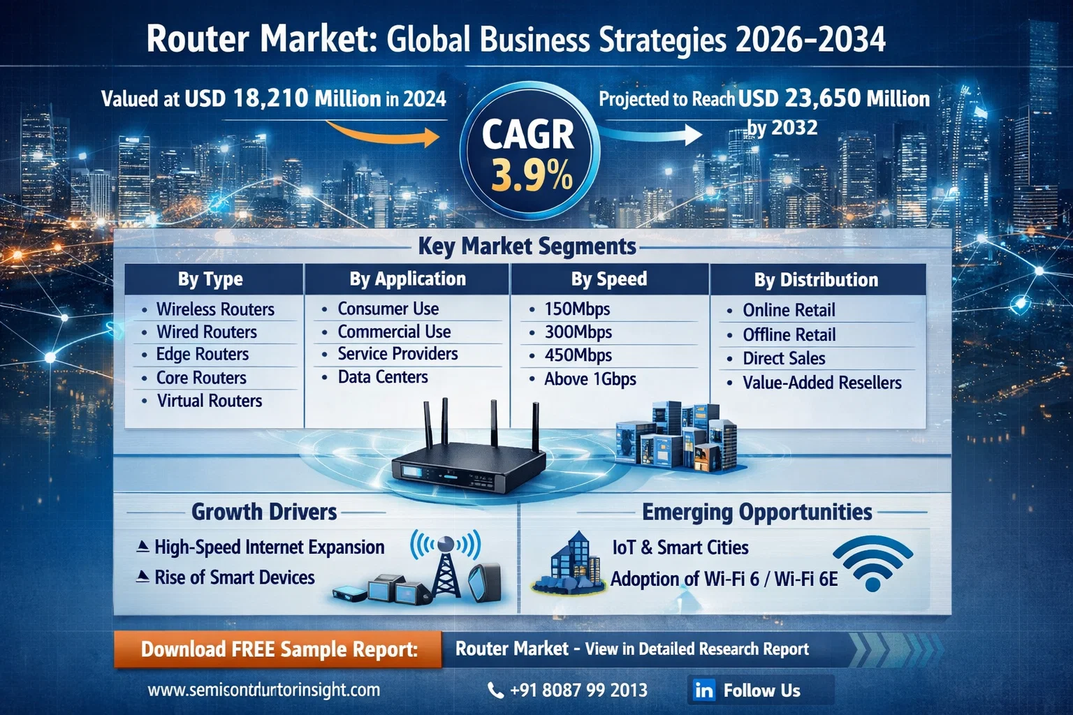 Router Market, valued at a substantial USD 18,210 million in 2024, is set for steady expansion, projected to reach USD 23,650 million by 2032. This growth, representing a compound annual growth rate (CAGR) of 3.9%, is detailed in a comprehensive new report published by Semiconductor Insight. The study underscores the indispensable role of routers as the backbone of modern digital connectivity, enabling everything from remote work and online entertainment to complex enterprise networks and next-generation internet infrastructure.