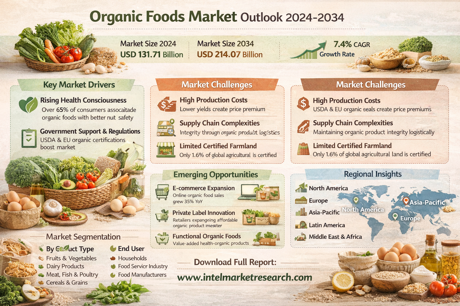 According to a new report from Intel Market Research, the global Organic Foods Market was valued at USD 131.71 billion in 2024 and is projected to reach USD 214.07 billion by 2034, growing at a CAGR of 7.4% during the forecast period (2025-2034). This growth is fueled by rising health consciousness among consumers, stringent food safety regulations, and expanding retail distribution channels for organic products.