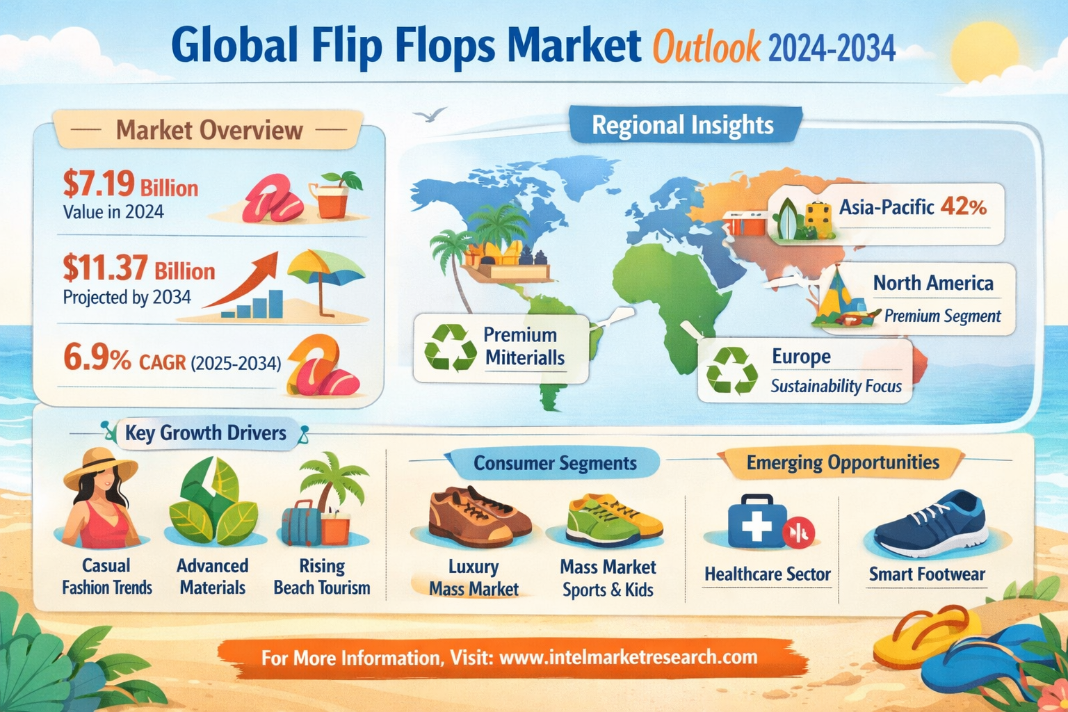 According to a new report from Intel Market Research, the global Flip Flops market was valued at USD 7.19 billion in 2024 and is projected to reach USD 11.37 billion by 2034, growing at a CAGR of 6.9% during the forecast period (2025-2034). This growth is fueled by increasing demand for comfortable footwear, expanding beach tourism, and the rising popularity of casual fashion trends worldwide.