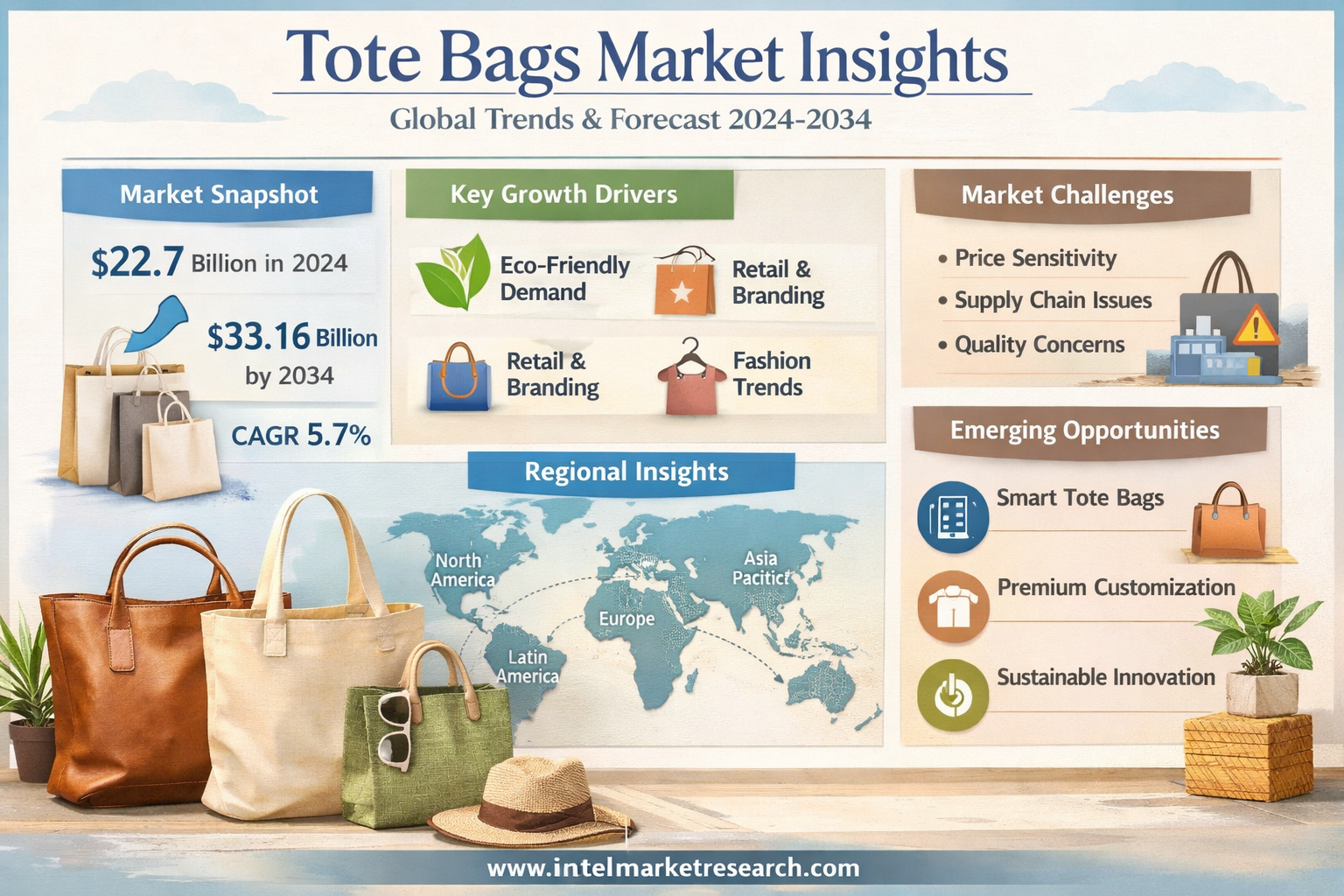 According to a new report from Intel Market Research, the global Tote Bags market was valued at USD 22,720 million in 2024 and is projected to reach USD 33,160 million by 2034, growing at a CAGR of 5.7% during the forecast period (2025-2034). This growth is driven by increasing environmental awareness, the shift toward sustainable alternatives to single-use plastic bags, and the rising adoption of tote bags as fashion accessories.