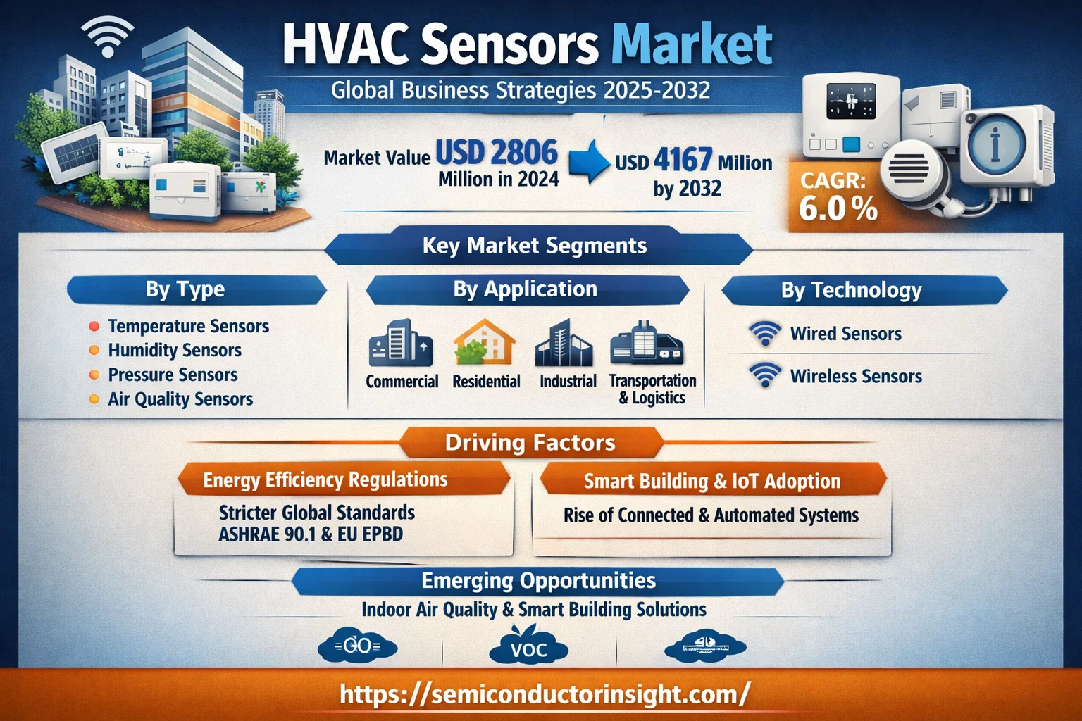 HVAC Sensors Market, valued at a robust USD 2806 million in 2024, is on a trajectory of steady expansion, projected to reach USD 4167 million by 2032. This growth, representing a compound annual growth rate (CAGR) of 6.0%, is detailed in a comprehensive new report published by Semiconductor Insight. The study highlights the critical role of these precision measurement devices in ensuring energy efficiency, indoor air quality, and optimal climate control across residential, commercial, and industrial applications.