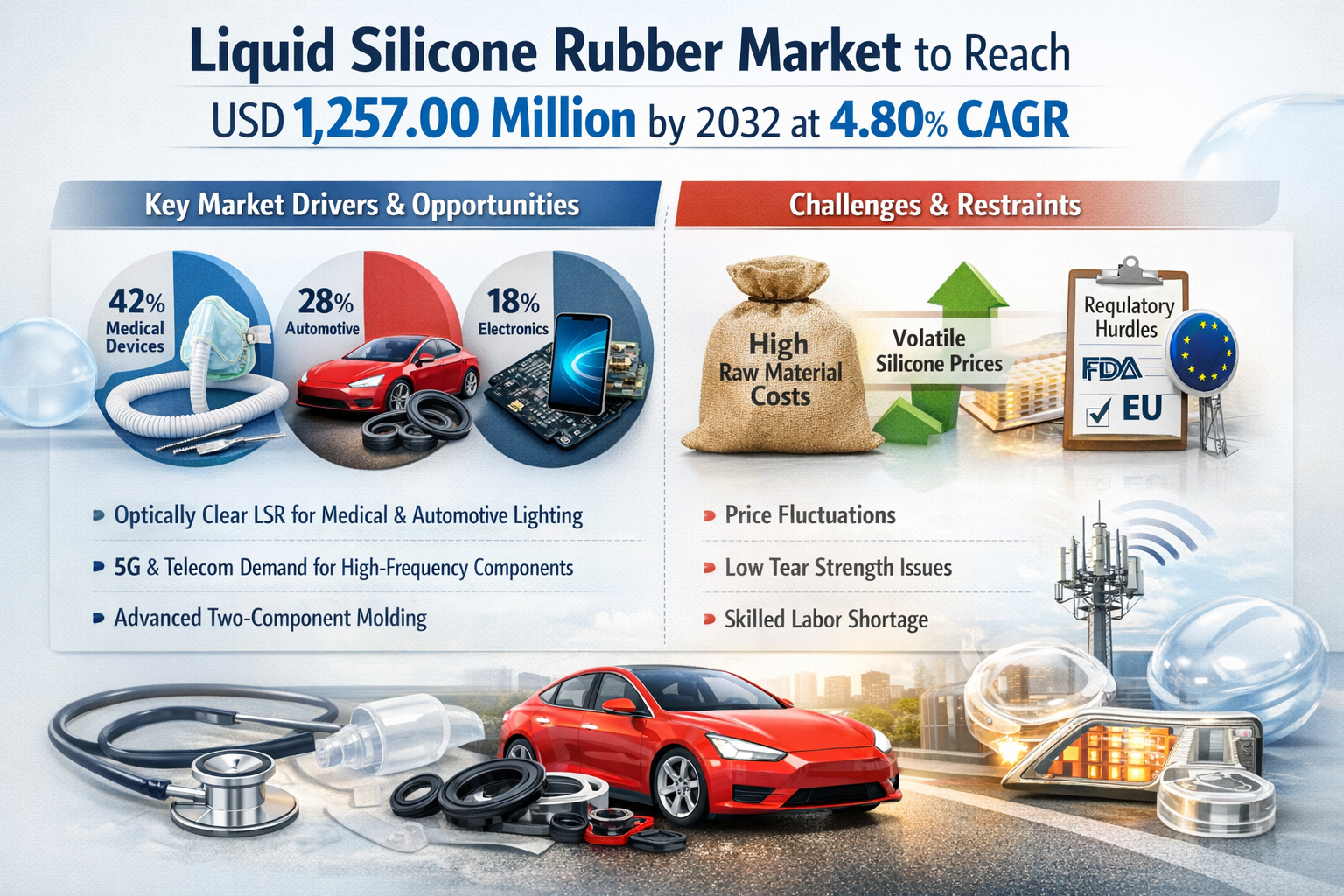 Liquid Silicone Rubber Market to Reach USD 1,257.00 Million by 2032 at 4.80% CAGR