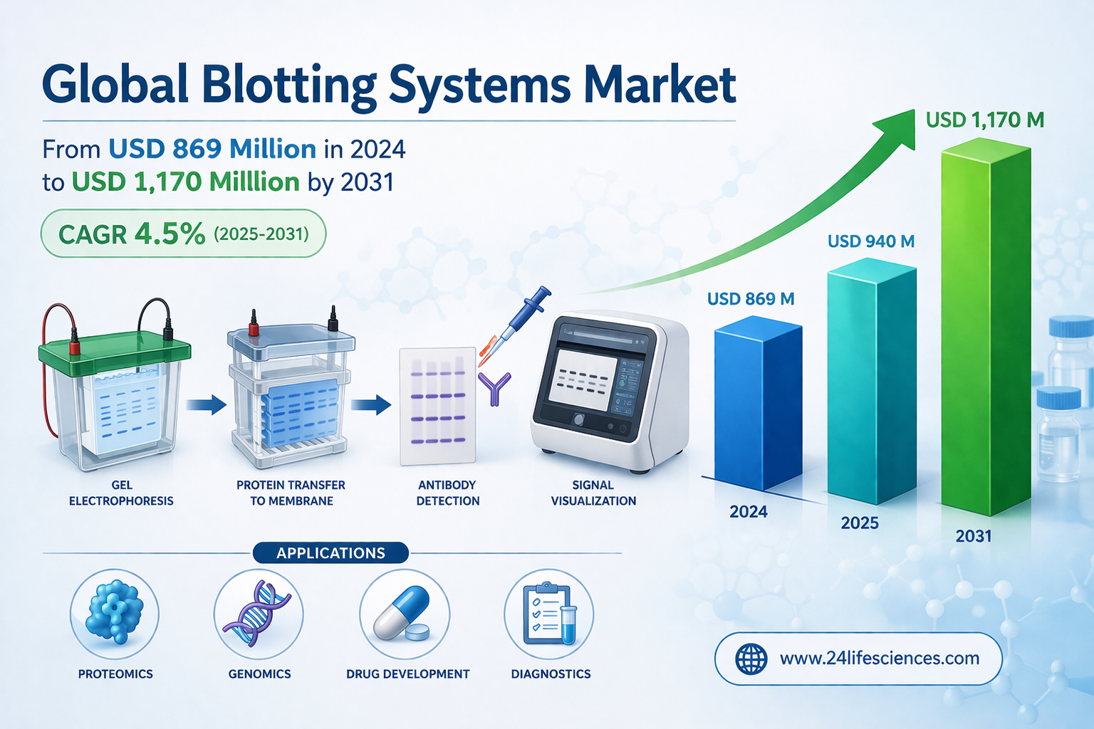 According to a newly published market research report by 24LifeSciences, global blotting systems market was valued at USD 869 million in 2024 and is projected to reach USD 1,170 million by 2031, growing at a compound annual growth rate (CAGR) of 4.5% during the forecast period 2025-2031.