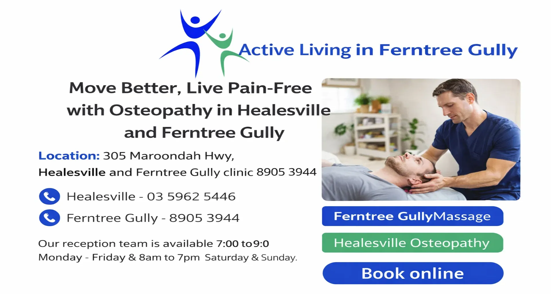 #HealesvilleOsteopathy #FerntreeGullyOsteopathy #PainRelief #NaturalHealing #OsteopathyCare #BackPainRelief #MobilityImprovement #WellnessJourney #HealthyLiving #InjuryRecovery