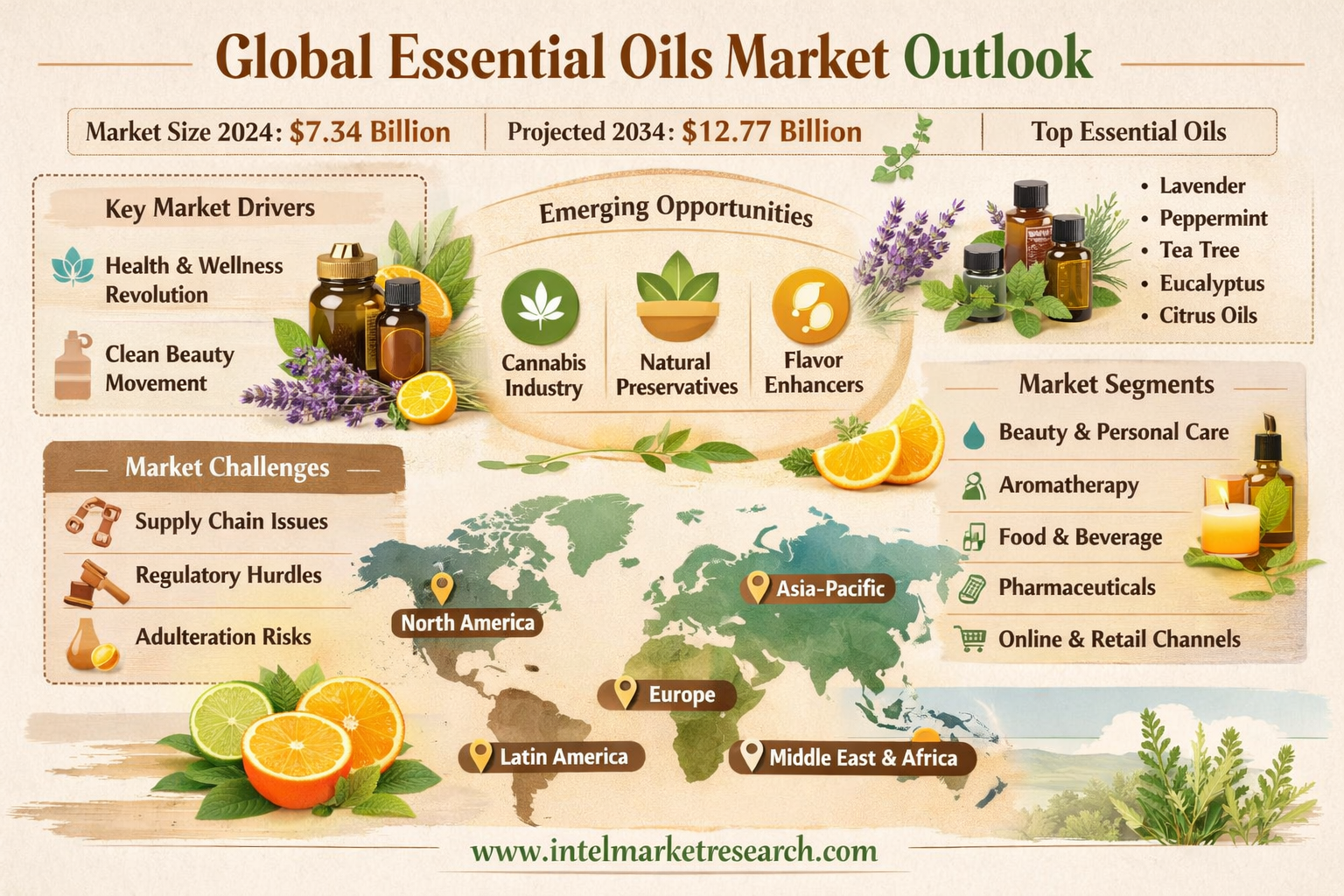 - Europe: Maintains strong growth through Germany's holistic health traditions and France's perfume industry leadership