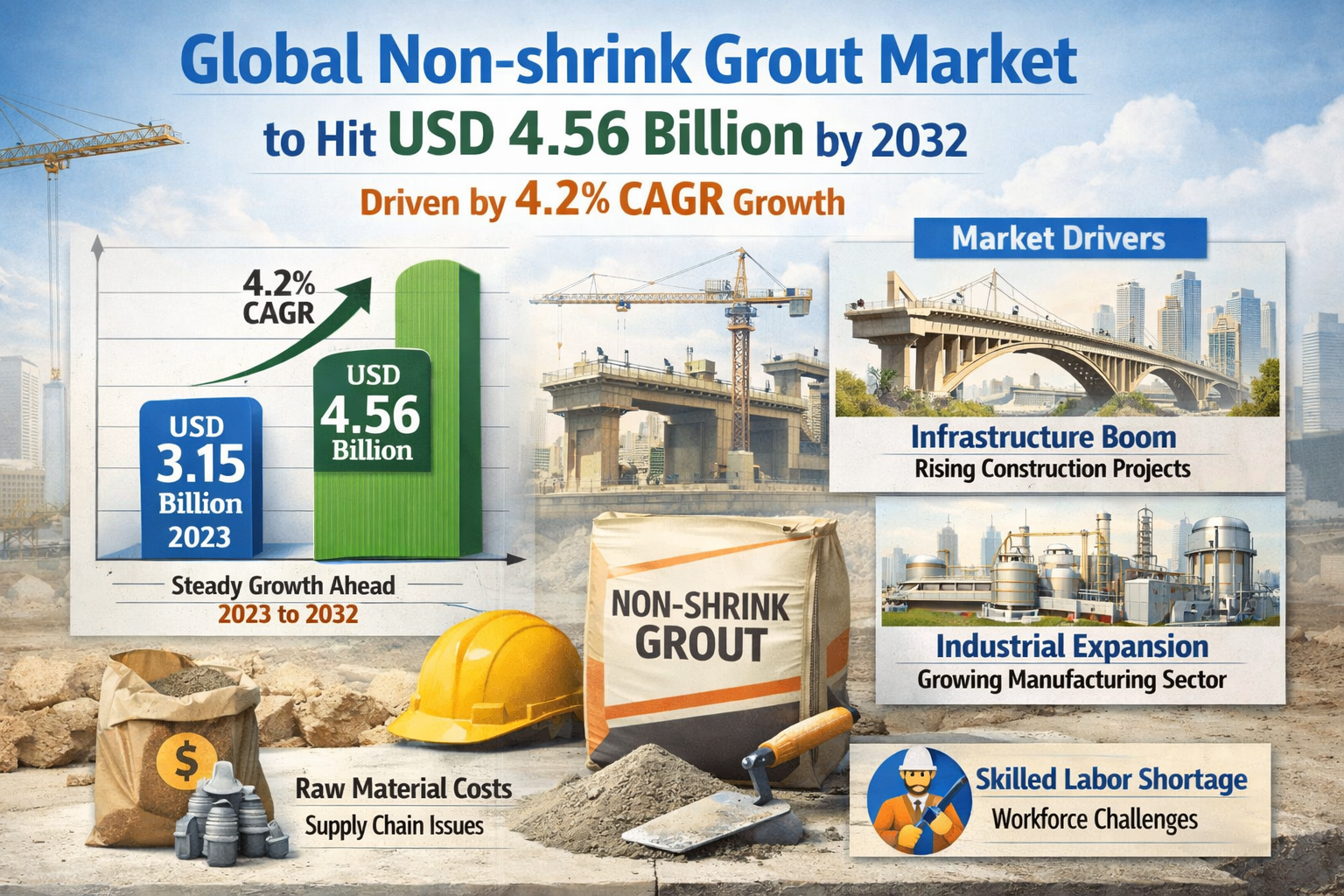 Global Non-shrink Grout Market to Hit USD 4.56 Billion by 2032 Driven by 4.2% CAGR Growth