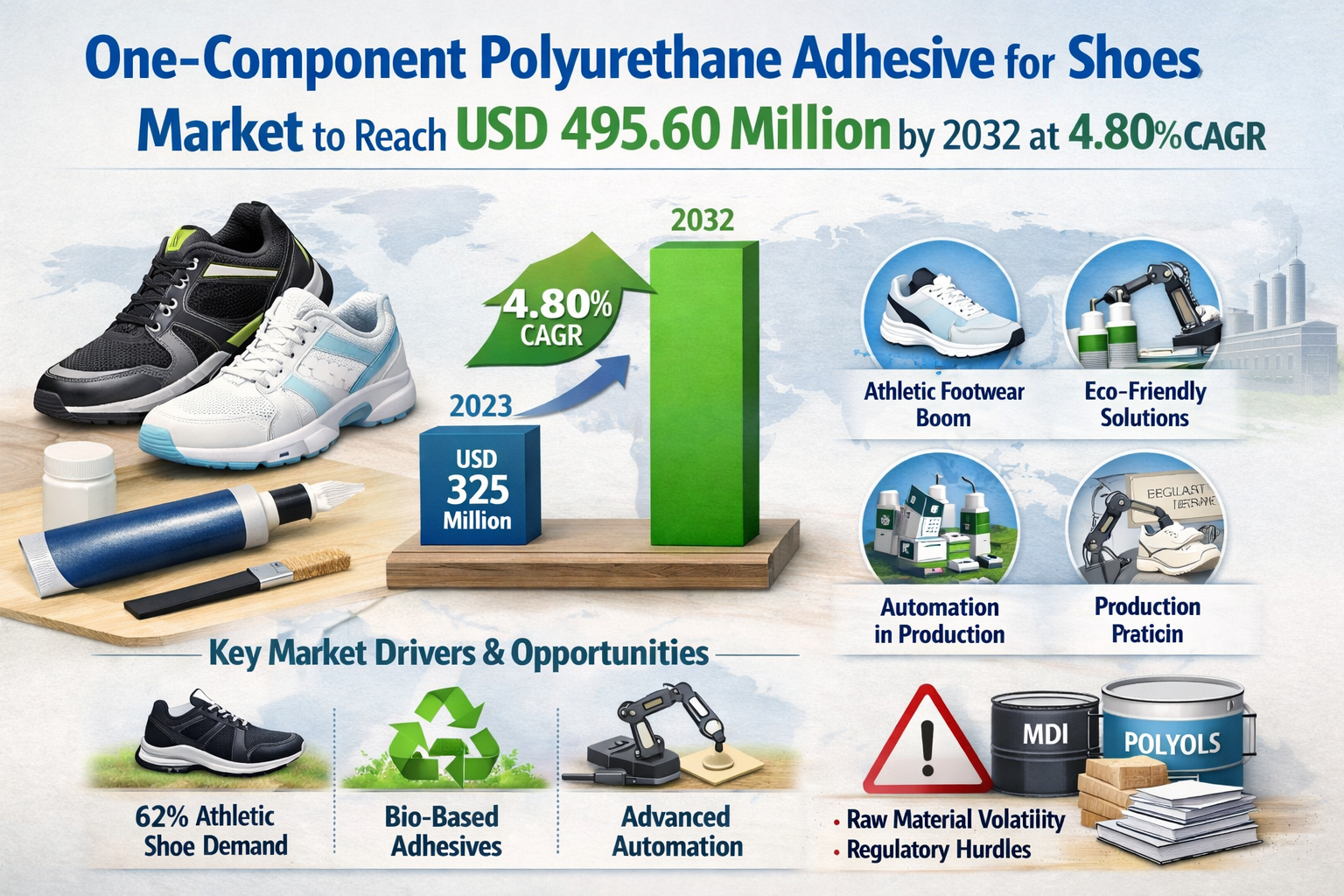 One-Component Polyurethane Adhesive for Shoes Market to Reach USD 495.60 Million by 2032 at 4.80% CAGR