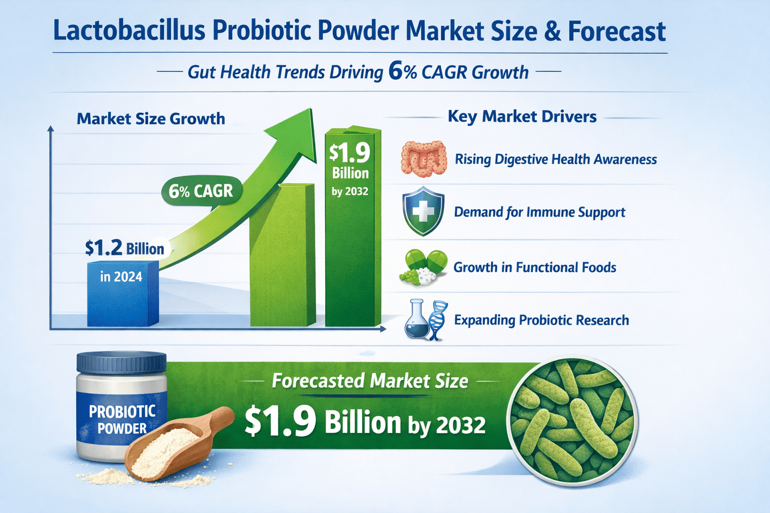 Lactobacillus Probiotic Powder Market Size & Forecast 2024–2032 | Gut Health Trends Driving 6% CAGR Growth