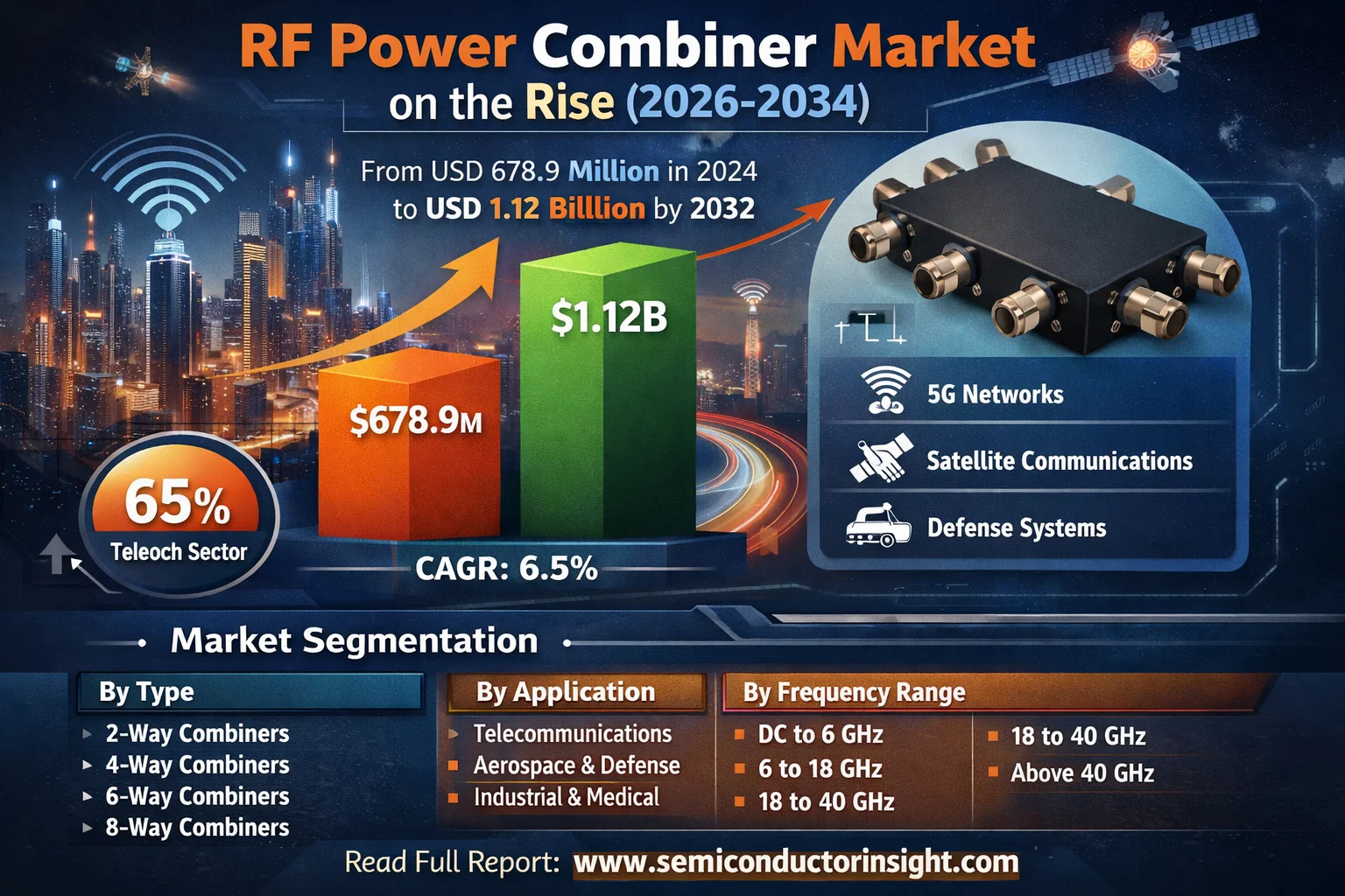 Global RF Power Combiner Market, valued at USD 678.9 million in 2024, is poised for substantial growth, projected to reach USD 1.12 billion by 2032. This expansion, representing a compound annual growth rate (CAGR) of 6.5%, is detailed in a comprehensive new report published by Semiconductor Insight. The study underscores the critical role these essential RF components play in enabling efficient signal management across telecommunications, aerospace, and emerging technological applications.