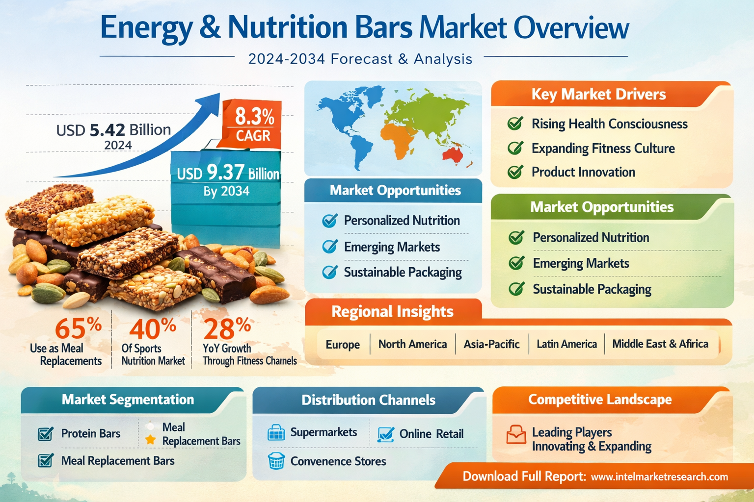 According to a new report from Intel Market Research, the global energy and nutrition bars market was valued at USD 5.42 billion in 2024 and is projected to reach USD 9.37 billion by 2034, growing at a CAGR of 8.3% during the forecast period (2024-2034). This growth is driven by rising health consciousness, increasing demand for convenient nutrition solutions, and expanding fitness culture worldwide.