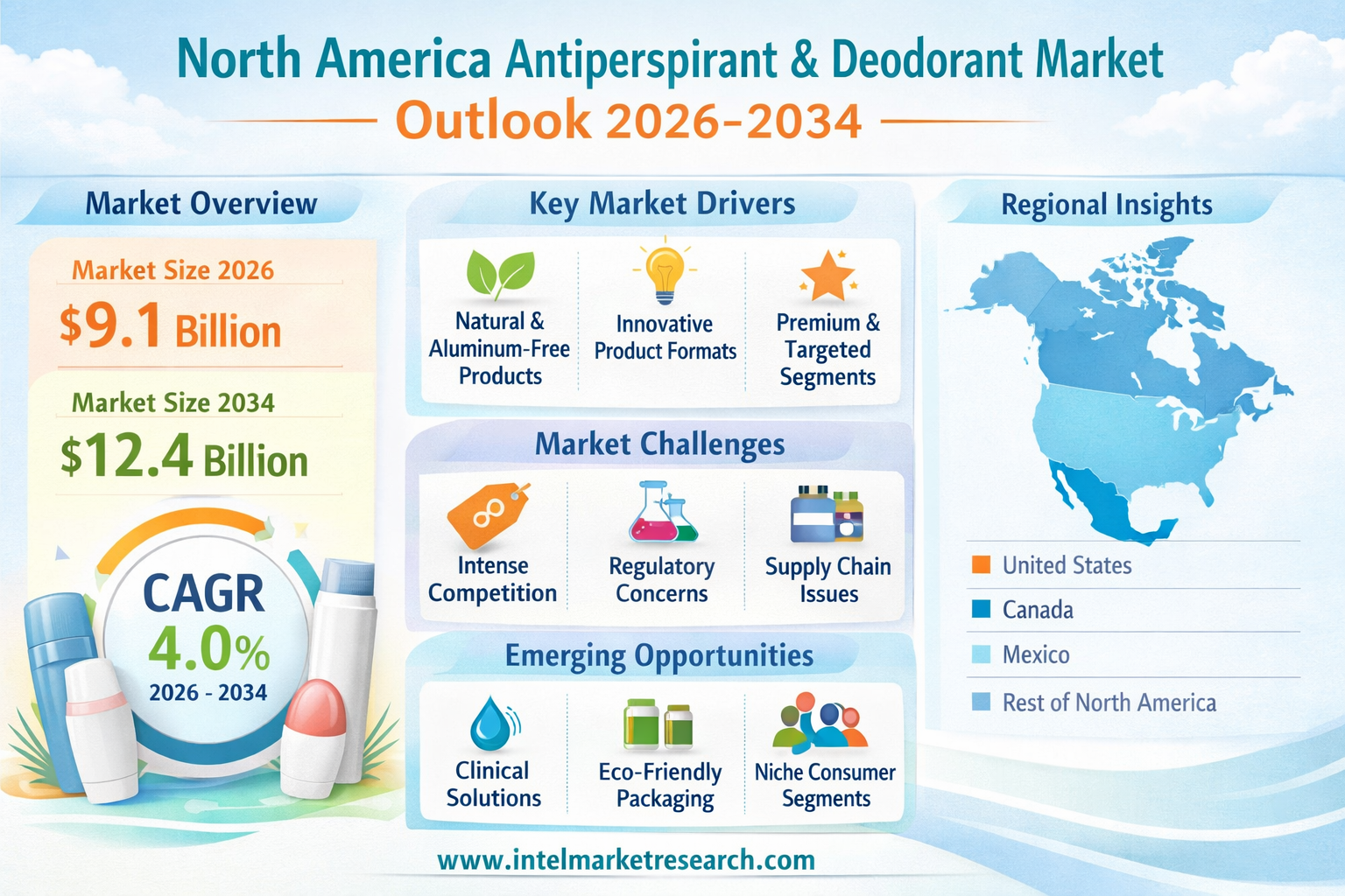 According to a new report from Intel Market Research, the North America Antiperspirant and Deodorant Market was valued at USD 8.7 billion in 2025 and is projected to grow from USD 9.1 billion in 2026 to USD 12.4 billion by 2034, growing at a steady CAGR of 4.0% during the forecast period (2026–2034). This growth is propelled by increasing hygiene awareness, rising disposable incomes, and continuous product innovation focusing on natural ingredients and sustainable packaging.