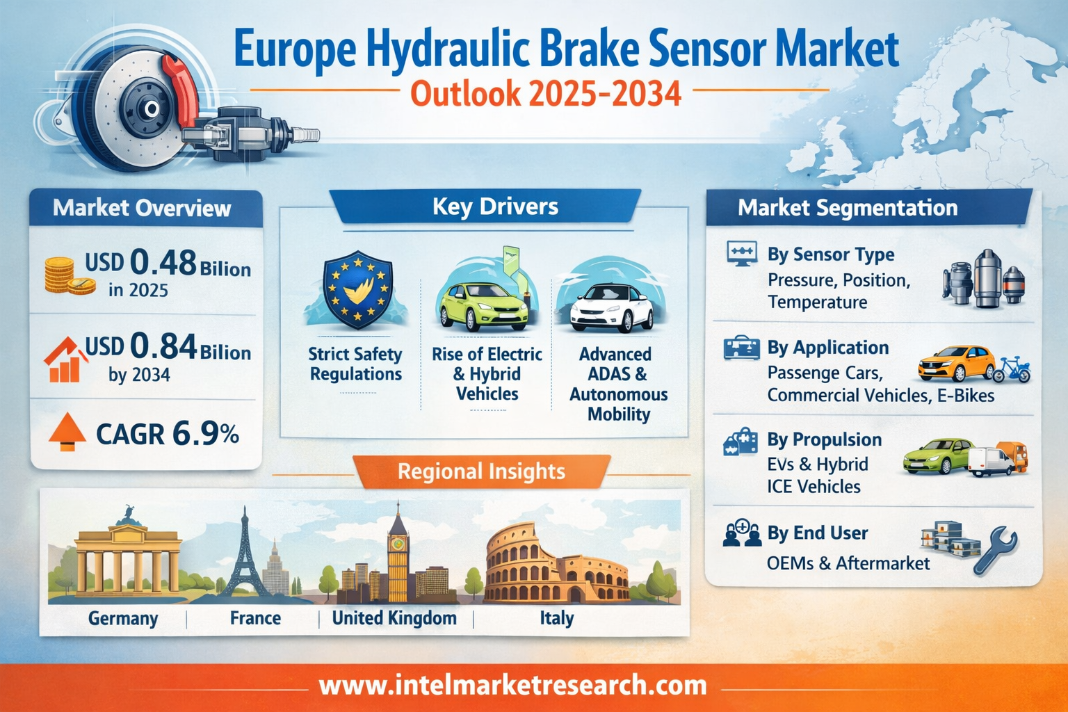 According to a new report from Intel Market Research, the Europe Hydraulic Brake Sensor Market was valued at USD 0.48 billion in 2025 and is projected to grow from USD 0.52 billion in 2026 to USD 0.84 billion by 2034, exhibiting a robust CAGR of 6.9% during the forecast period (2026–2034). This growth is propelled by increasingly stringent vehicle safety regulations across the European Union, the rapid electrification of the automotive fleet, and a sustained push toward advanced driver-assistance systems and autonomous mobility solutions.