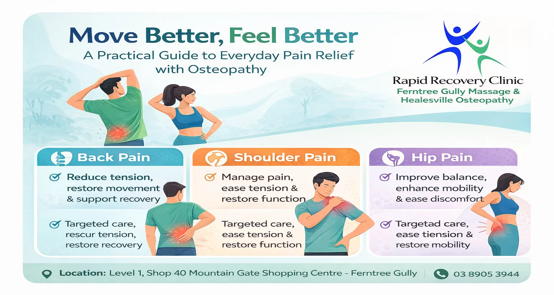 #HealesvilleOsteopathy #FerntreeGullyOsteopathy #OsteopathyCare #PainRelief #BackPainRelief #PostureCorrection #InjuryRecovery #HealthyMovement #WellnessJourney #RapidRecoveryClinic