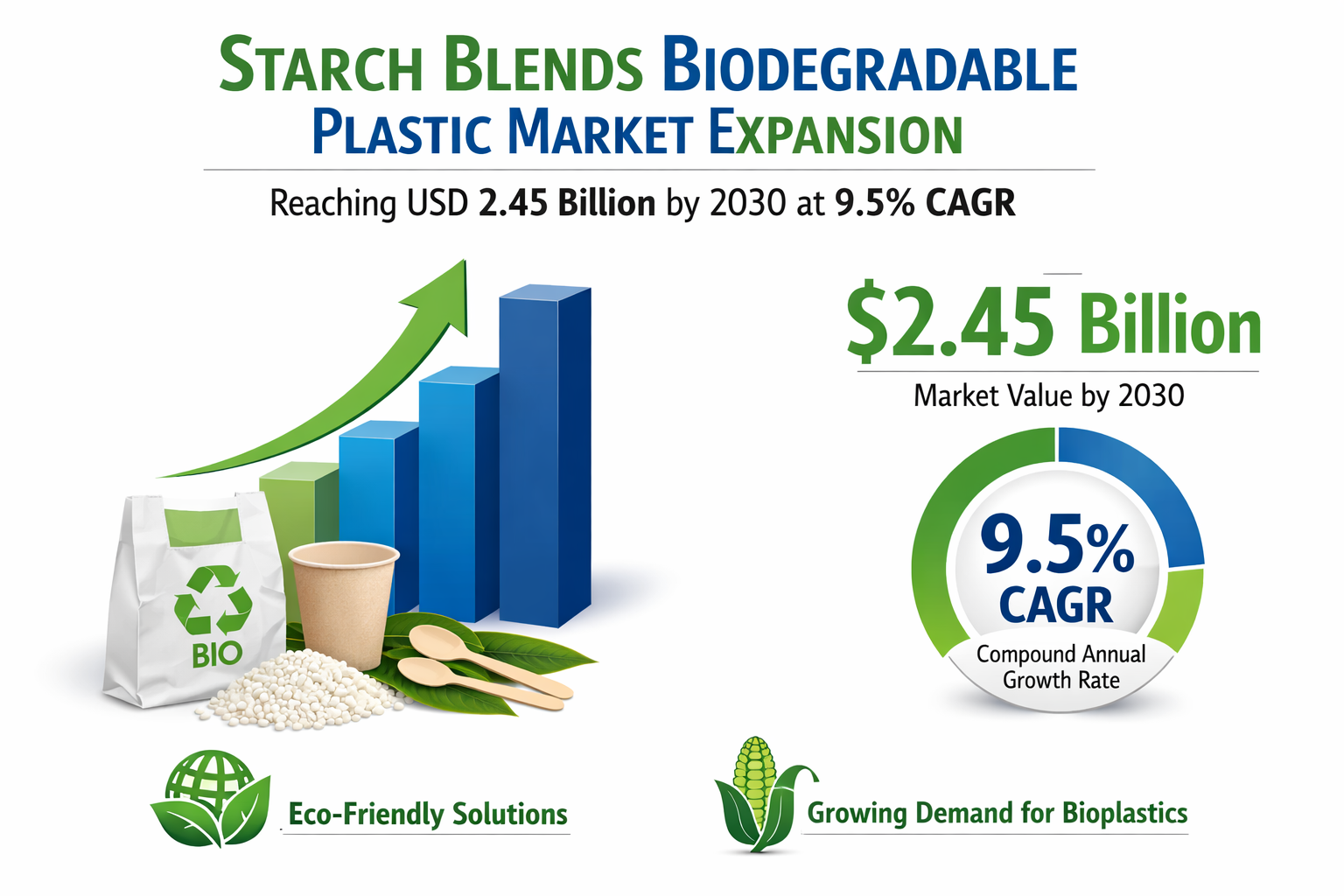 Starch Blends Biodegradable Plastic Market Expansion: Reaching USD 2.45 Billion by 2030 at 9.5% CAGR