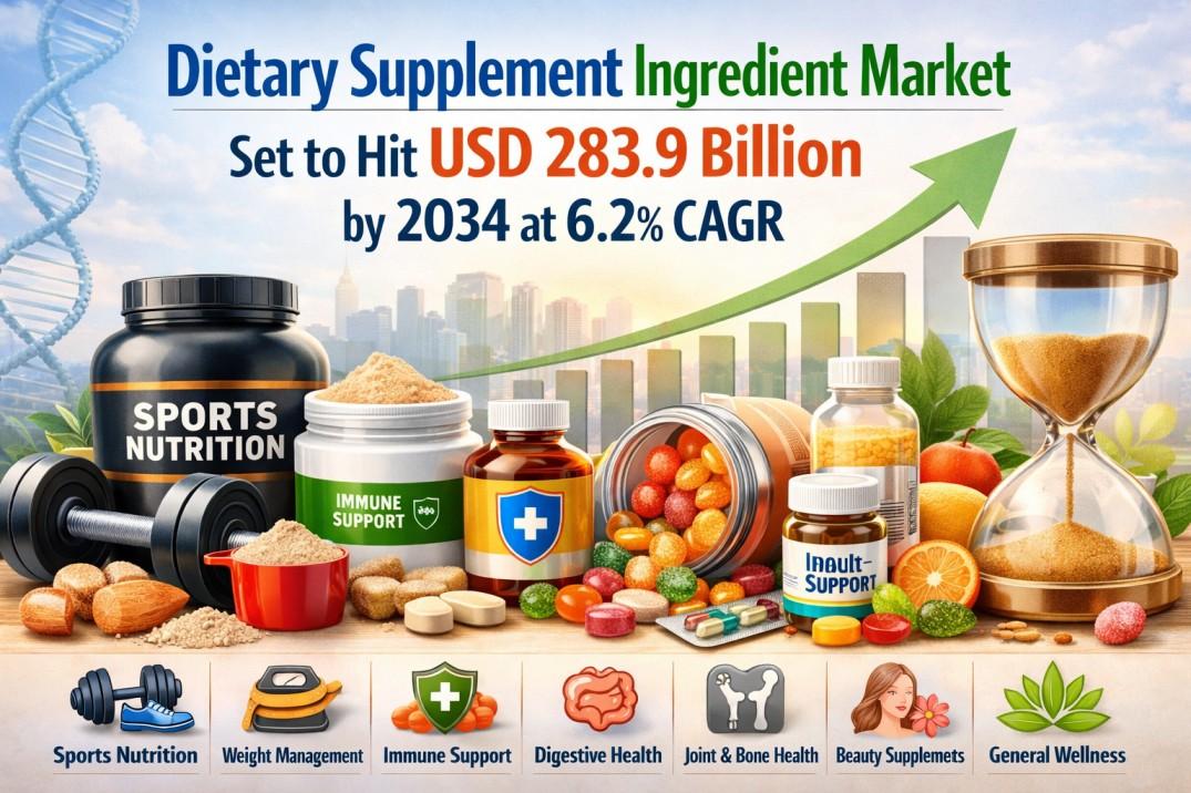 Dietary Supplement Ingredient Market Set to Hit USD 283.9 Billion by 2034 at 6.2% CAGR