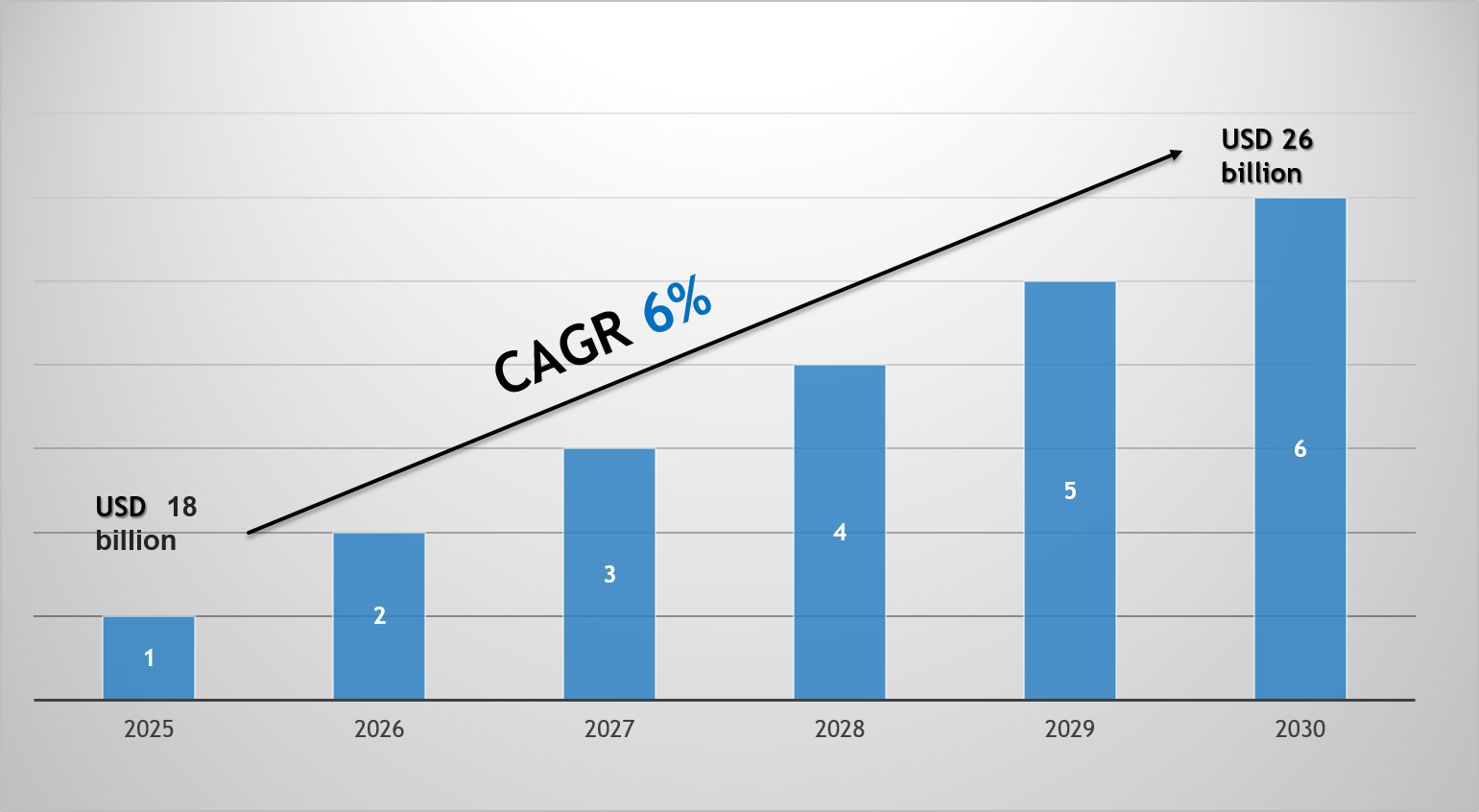 The Global Short-Range Air Defense (SHORAD) System Market size was valued at around USD 18 billion in 2024 and is projected to reach USD 26 billion by 2030. Along with this, the market is estimated to grow at a CAGR of around 6% during the forecast period 2025-30. The increasing threat of Unmanned Aerial Systems on the battlefield is growing intensively, which in turn is bringing in the market demand that helps in the protection from these threats. The surge in geopolitical tensions in regions such as Central Asia, the Middle East, South and Southeast Asia & Europe accelerates the demand for these systems.